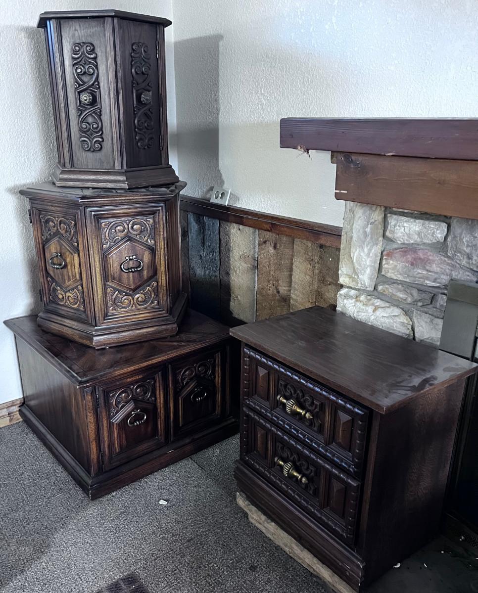 4 Gothic Non-Matching End Tables and a Night Stand BRING HELP TO MOVE OUT!!!!