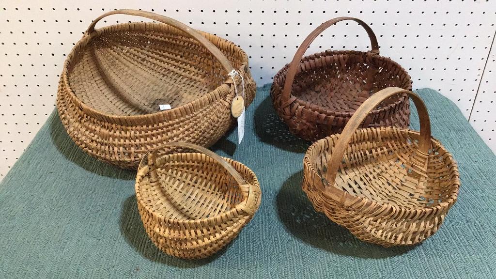 7, 9, 10, 13 inch respectively..largest has tight weave..some loss to all baskets.