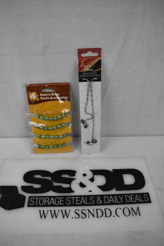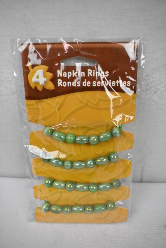 4 Green Beaded Napkin Rings & 1 Eyeglass Cord 26" - New