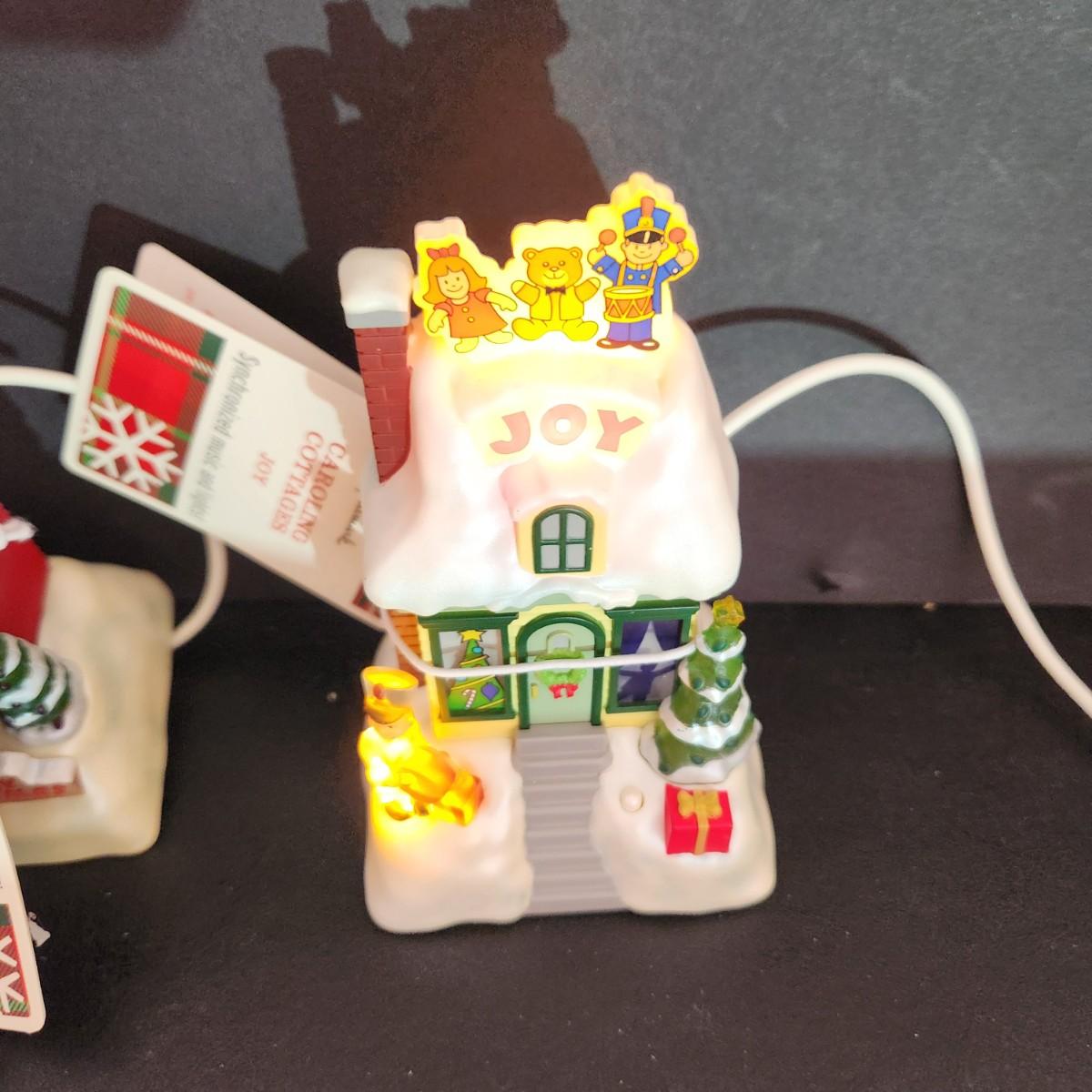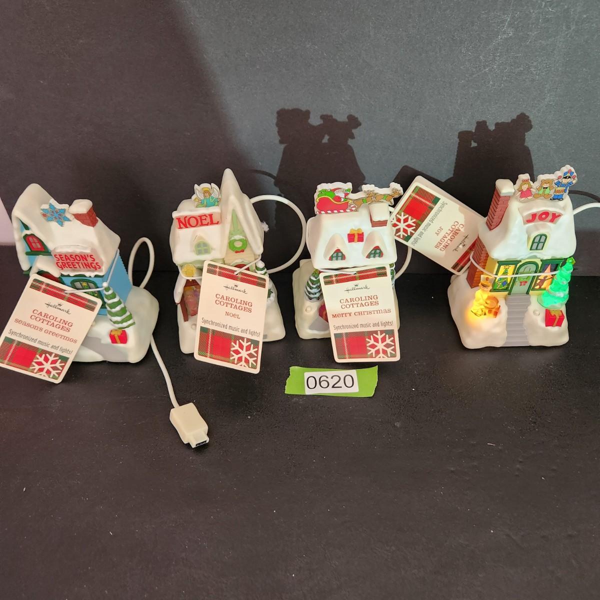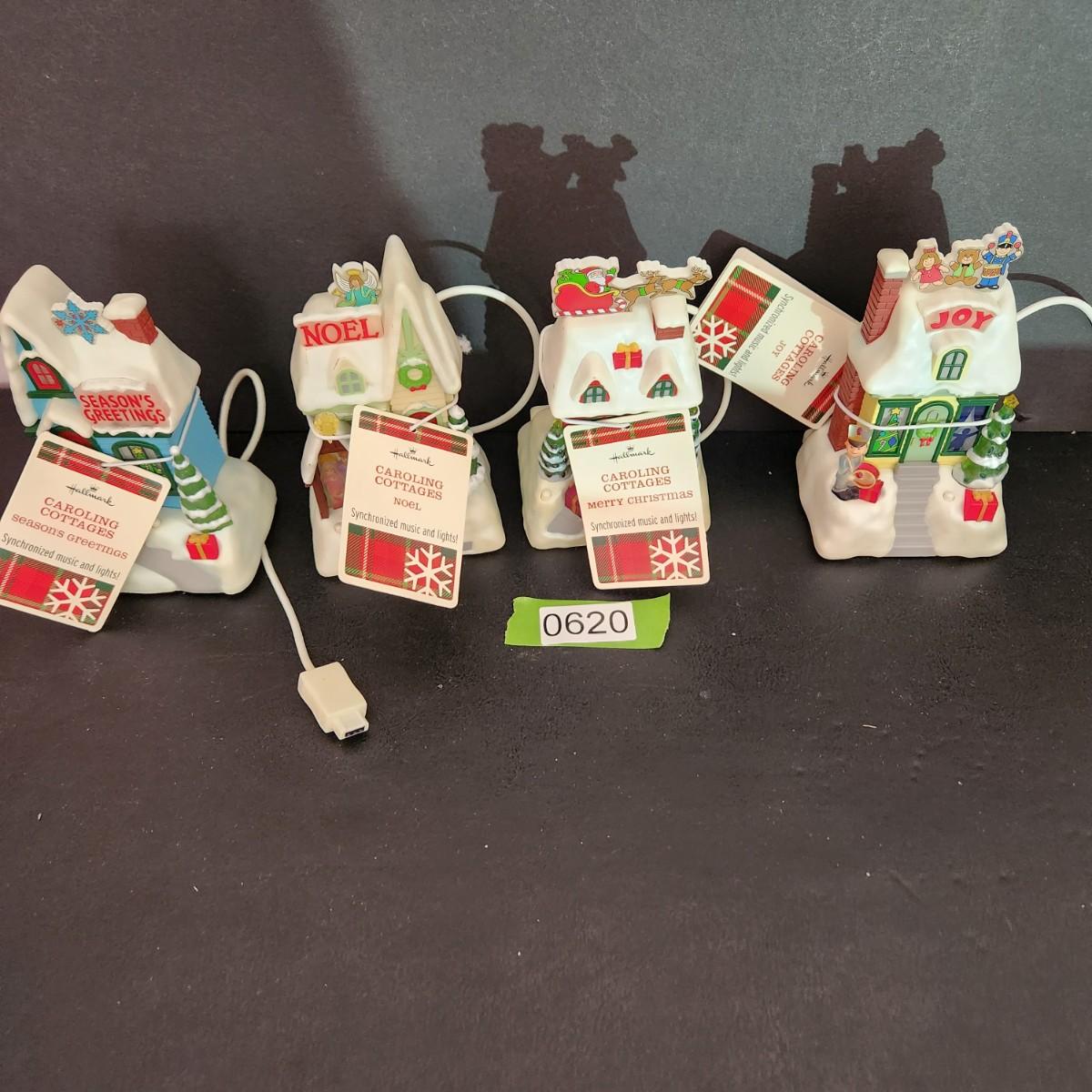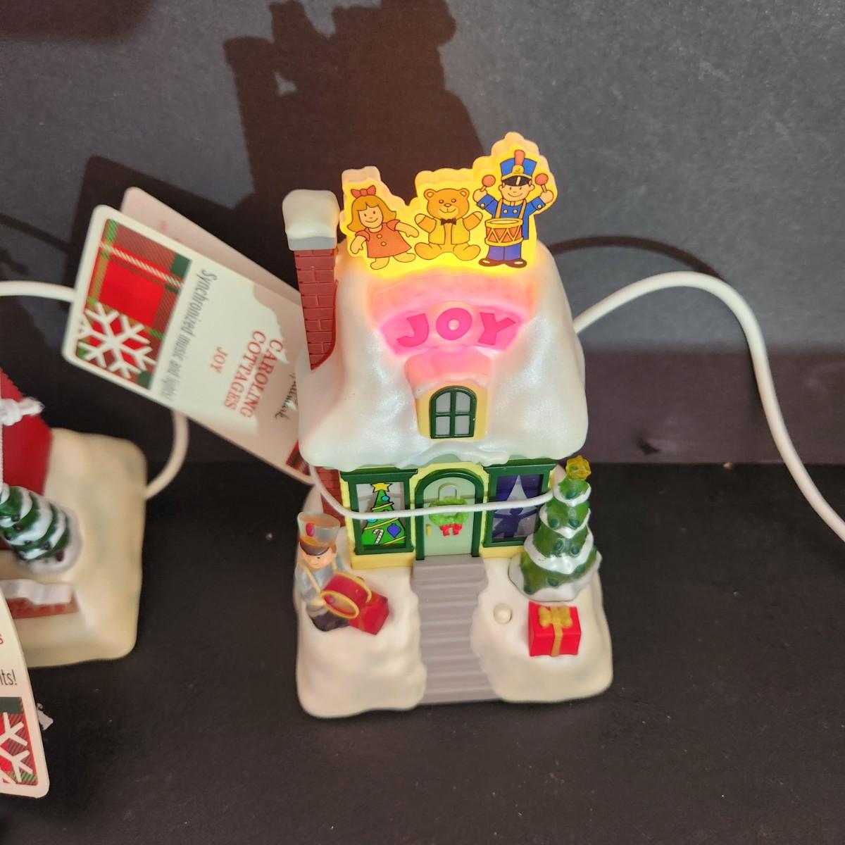 4 Hallmark Caroling Cottages Music & Lights Joy, Merry Christmas, Noel ,Seasons Greetings