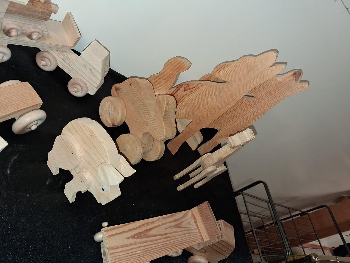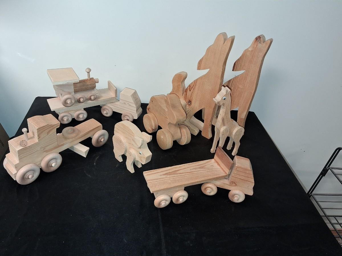 HANDCRAFTED WOODEN TOYS WITH EMBEDDED PENNY FOR YEAR MADE