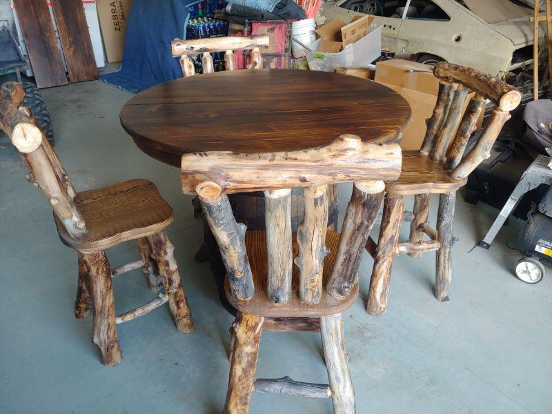Excellent craftsmanship on these 4 handmade log chairs. Note this does not include the table.