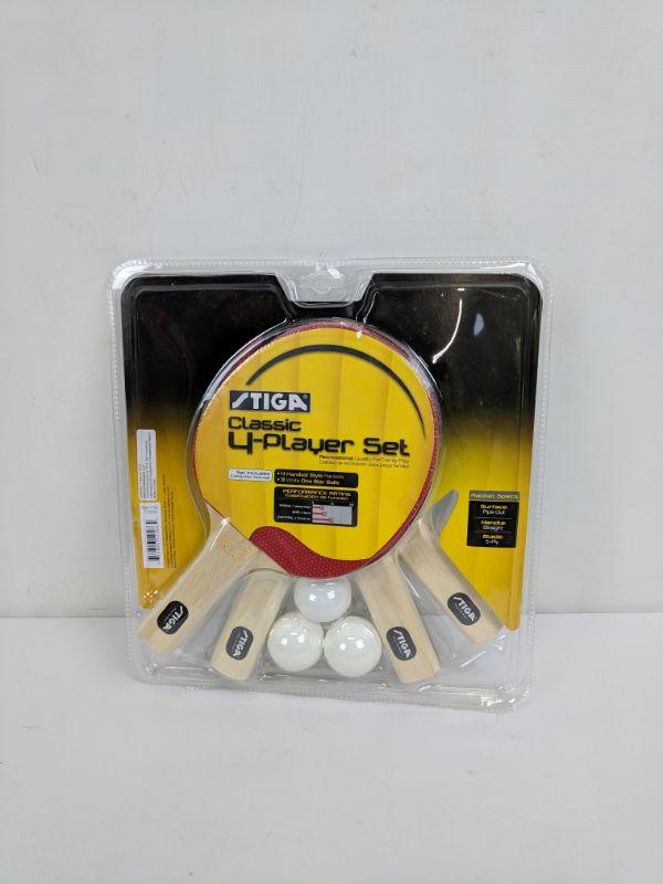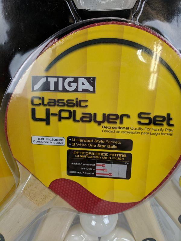 4 Hardbat Style Rackets, Classic 4-Player Set, 3 White One Star Balls - New