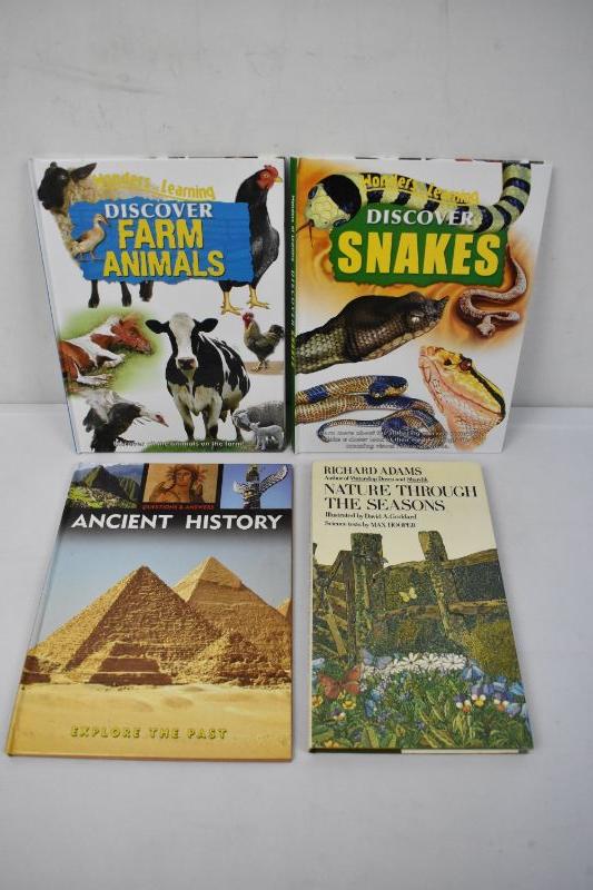 4 Hardcover Non-Fiction Books: Animals, Snakes, History, and Seasons