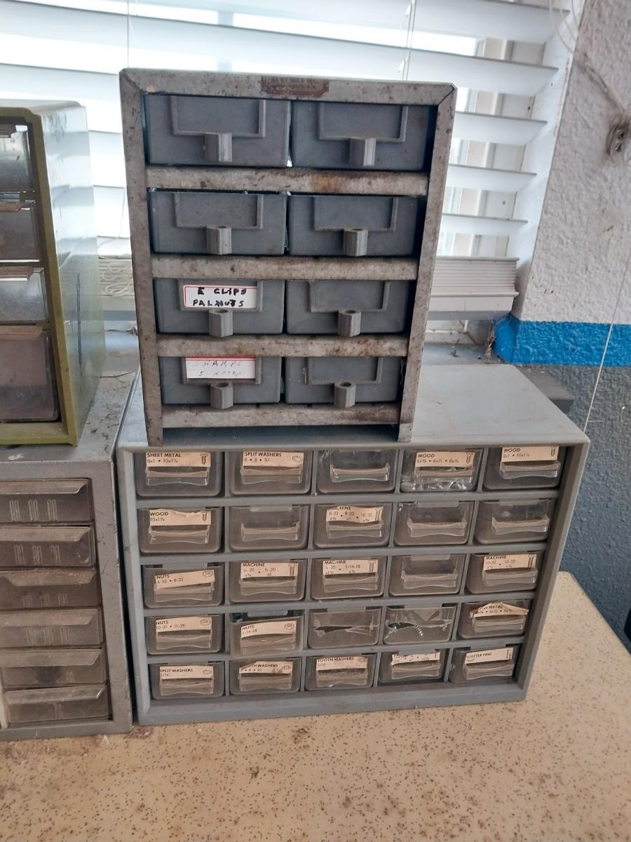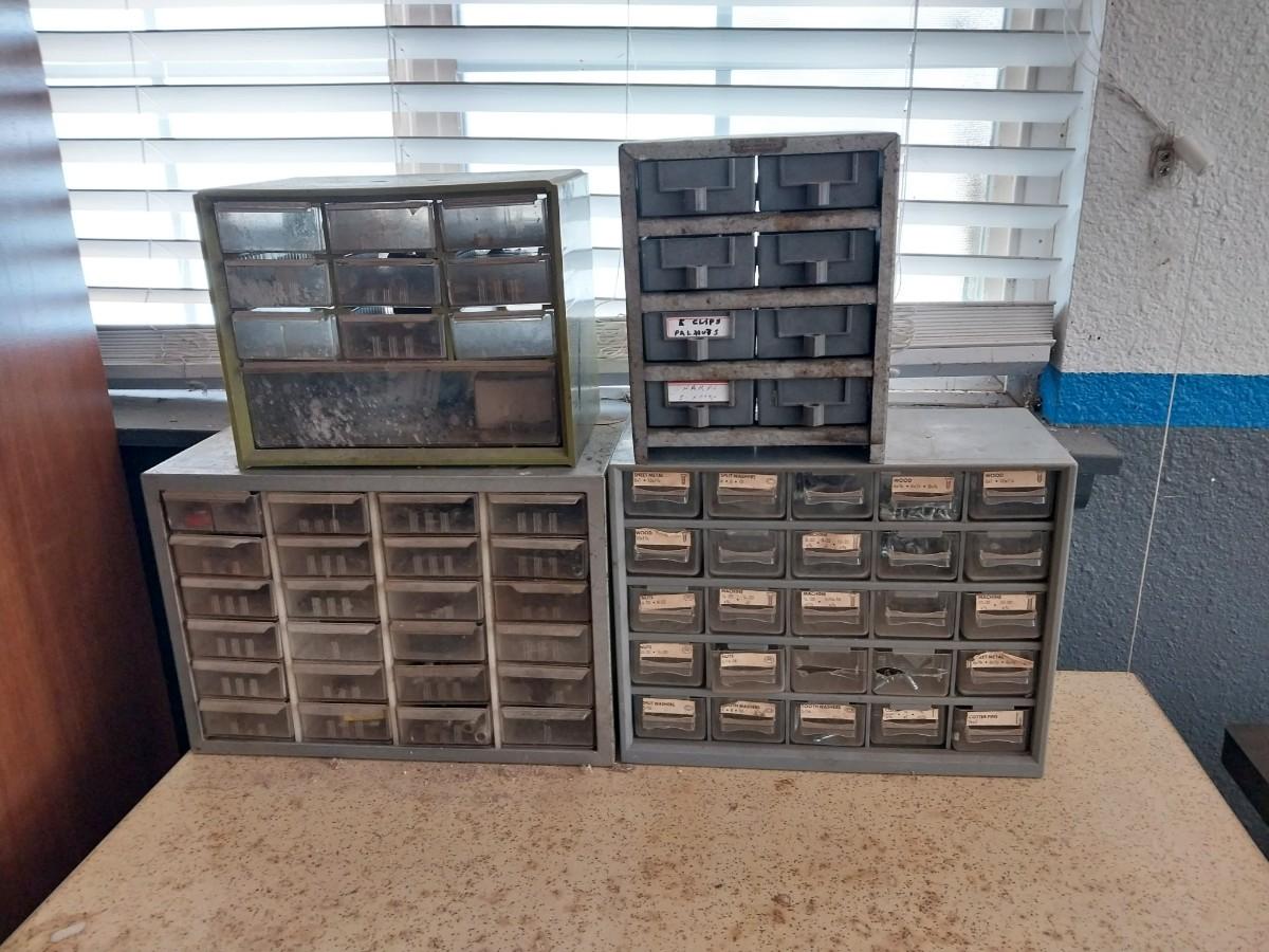 4 HARDWARE ORGANIZERS WITH SOME HARDWARE