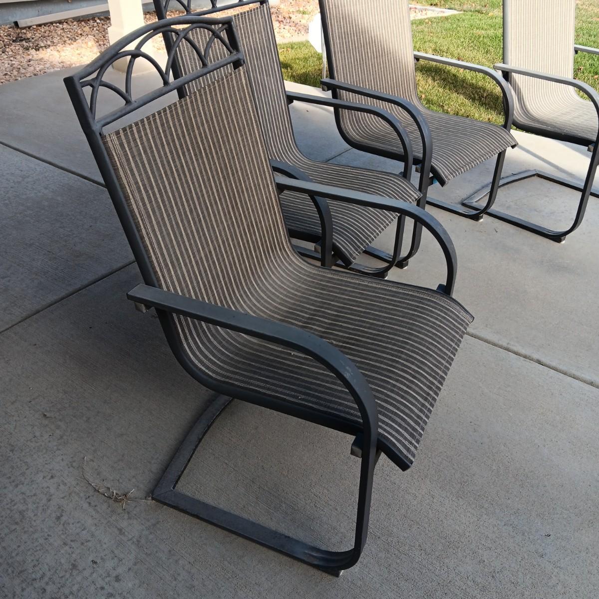 THERE'S A LITTLE RUST ON THE ARMRESTS AND TOP OF THE CHAIRS