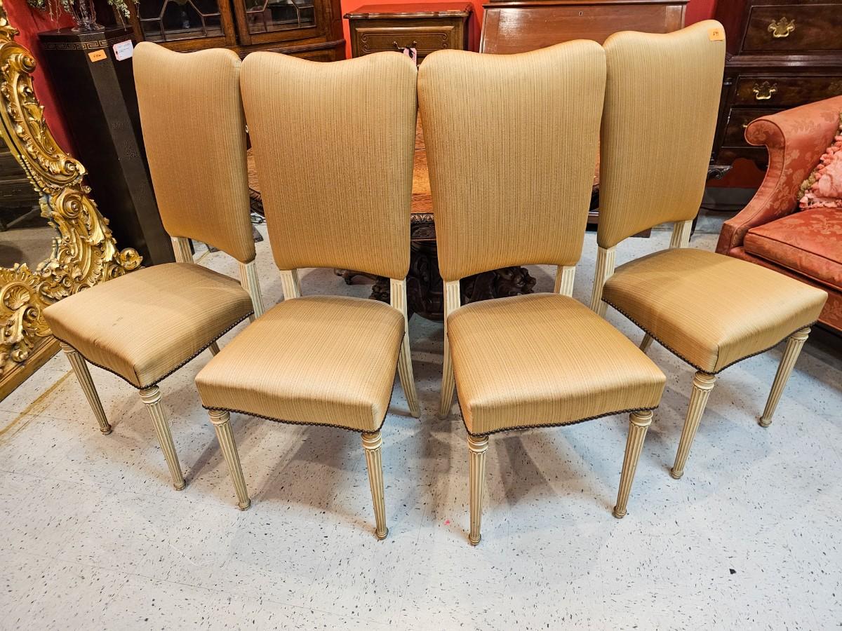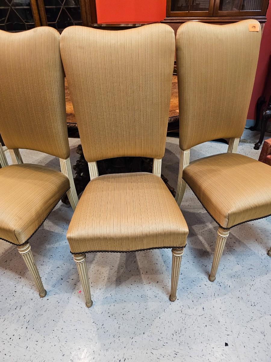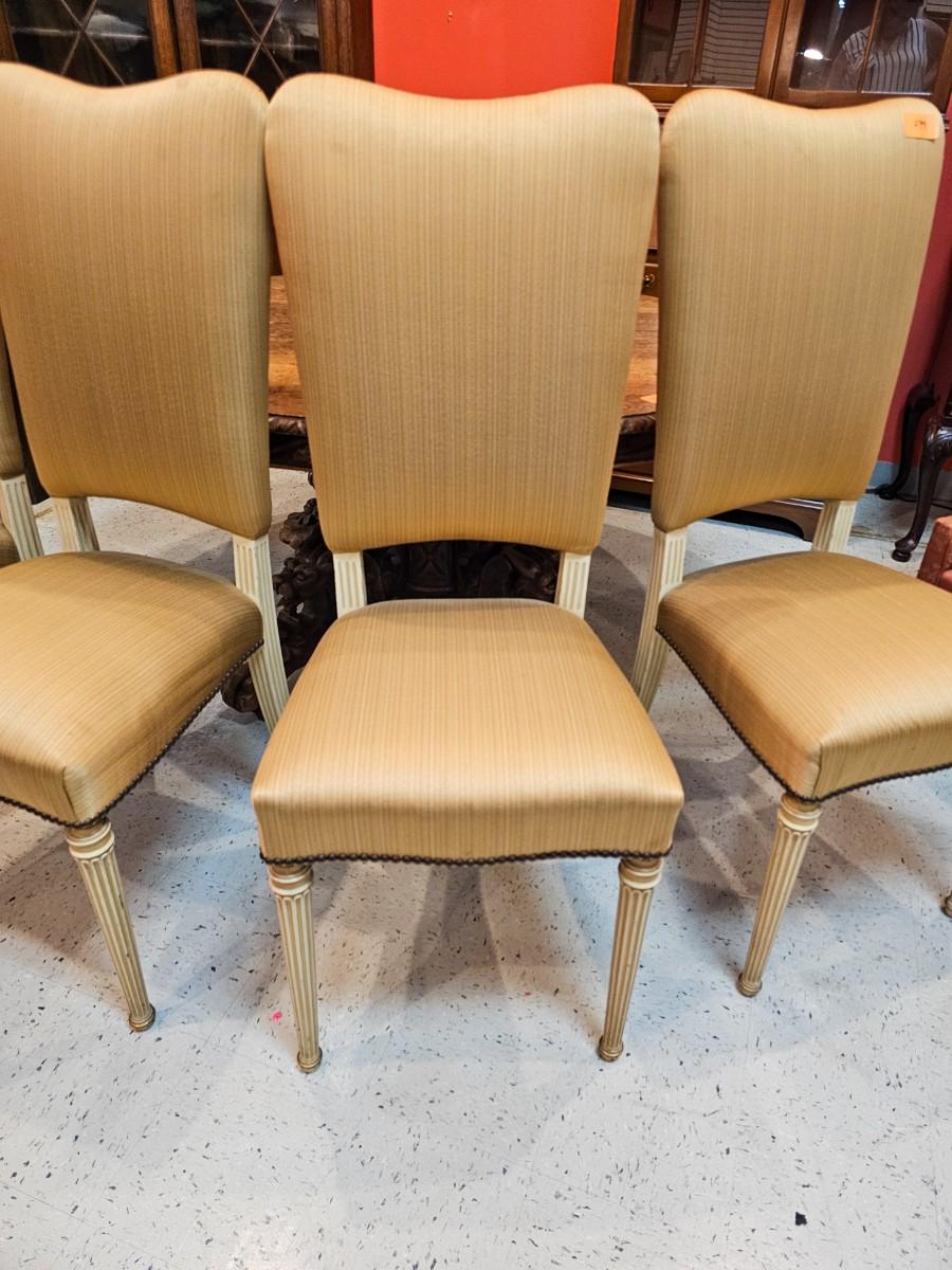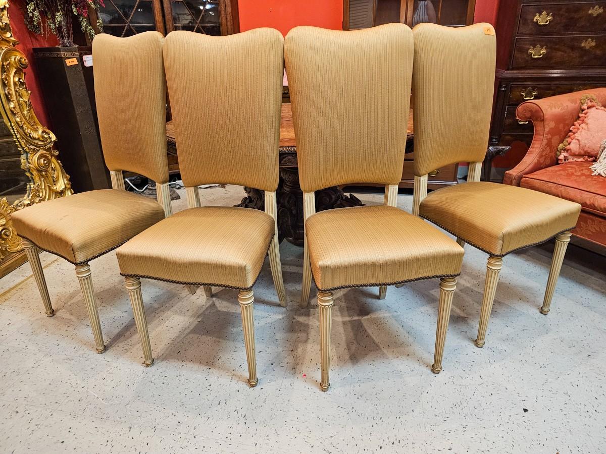 Set of 4 Hollywood Regency silk fabric side chairs, CA 1960.