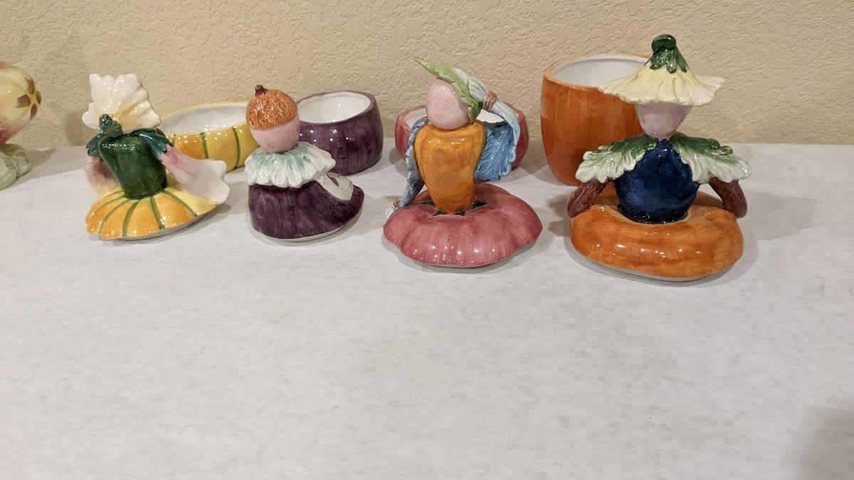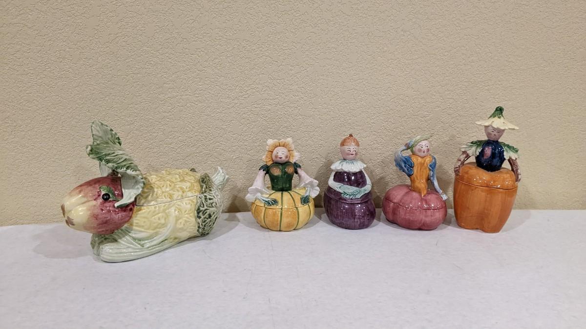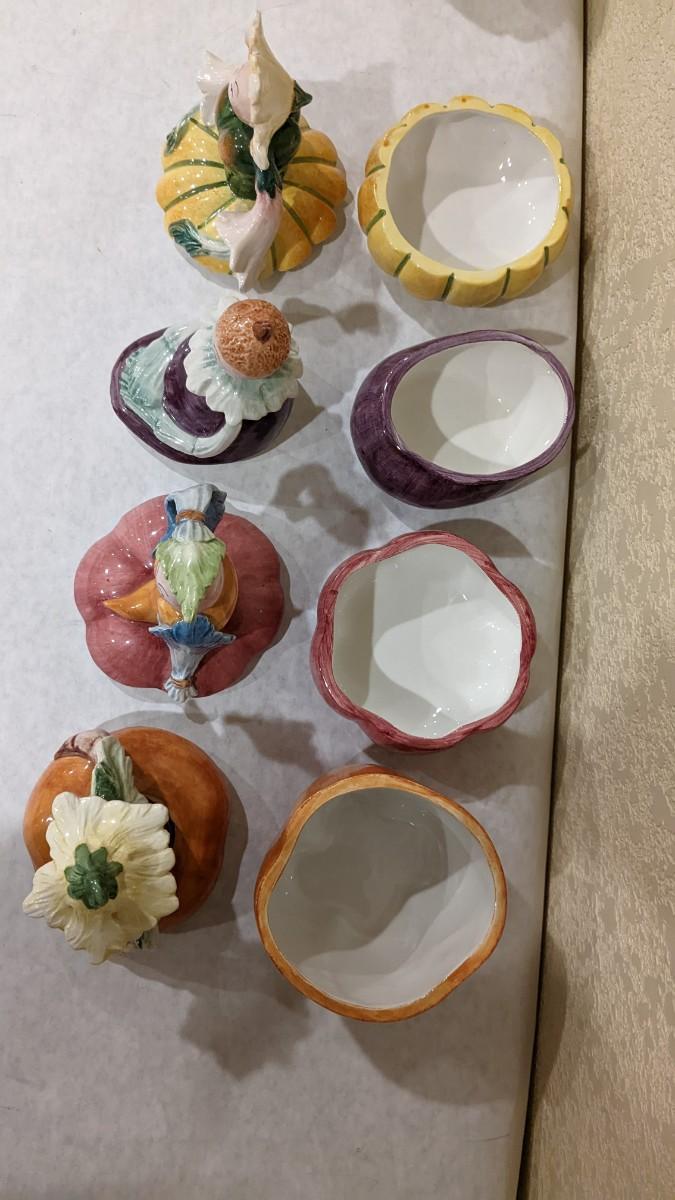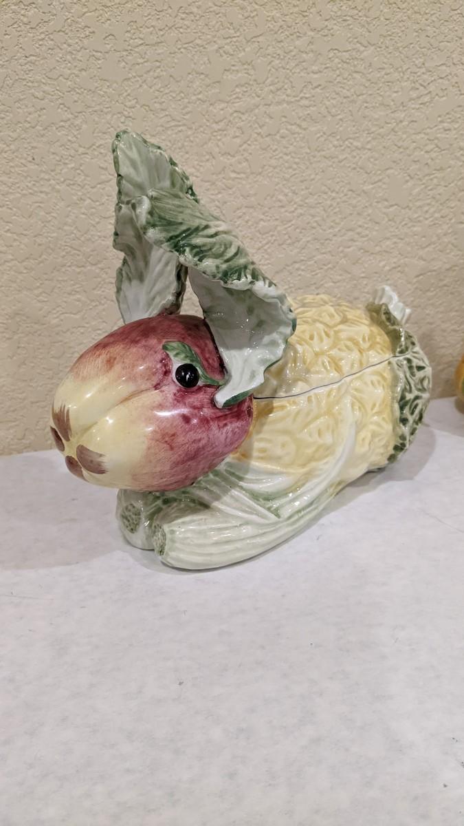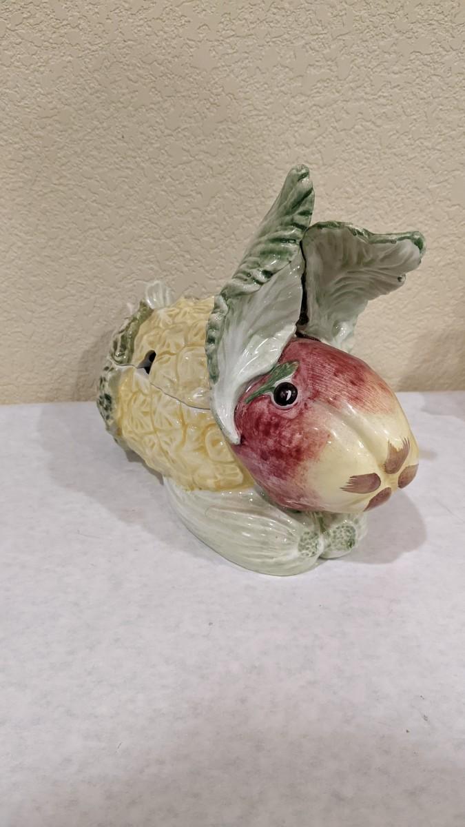 4ea, all in excellent condition. no flaws. includes Vietri Botanical Collection Bunny Rabbit Vegetable Tureen Majolica Italy 11x8
