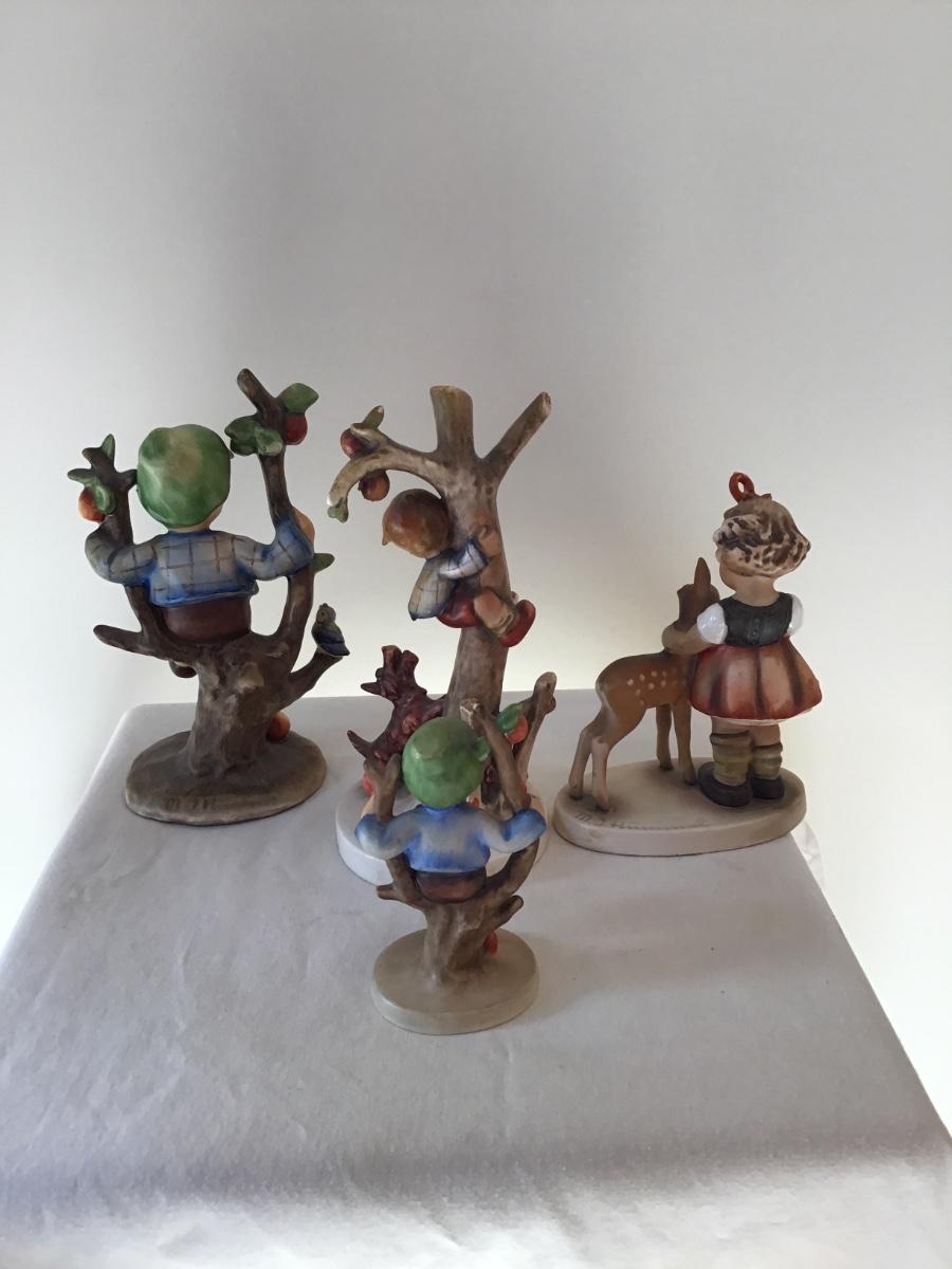 A group of 4 Hummel figurines, Apple Tree Boy 142/1 tmk2, Apple Tree Boy 142 3/0 tmk3,