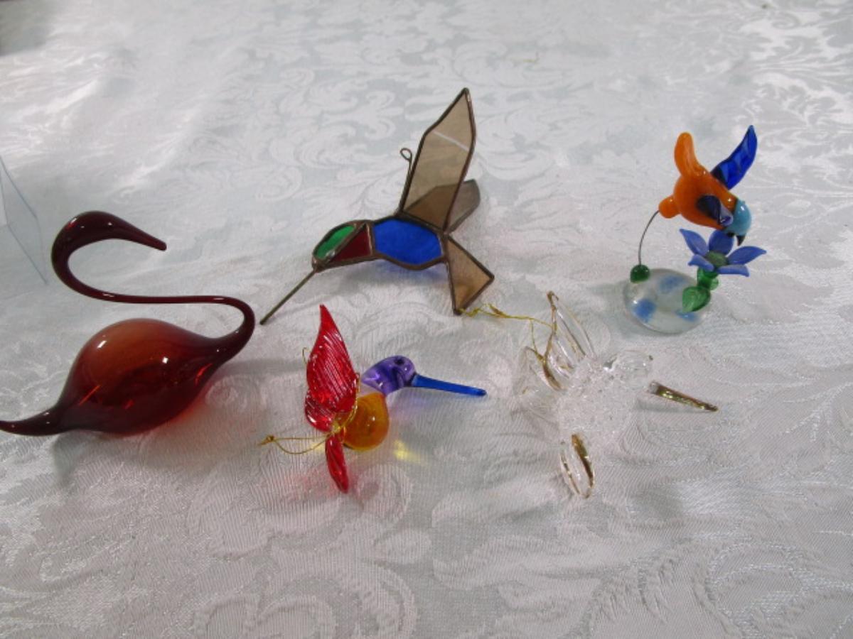 4 hummingbirds, 1 swan