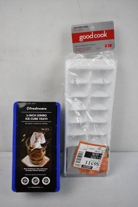4 Ice Cube Trays: 2 Blue Jumbo Trays & 2 White Standard Trays - New