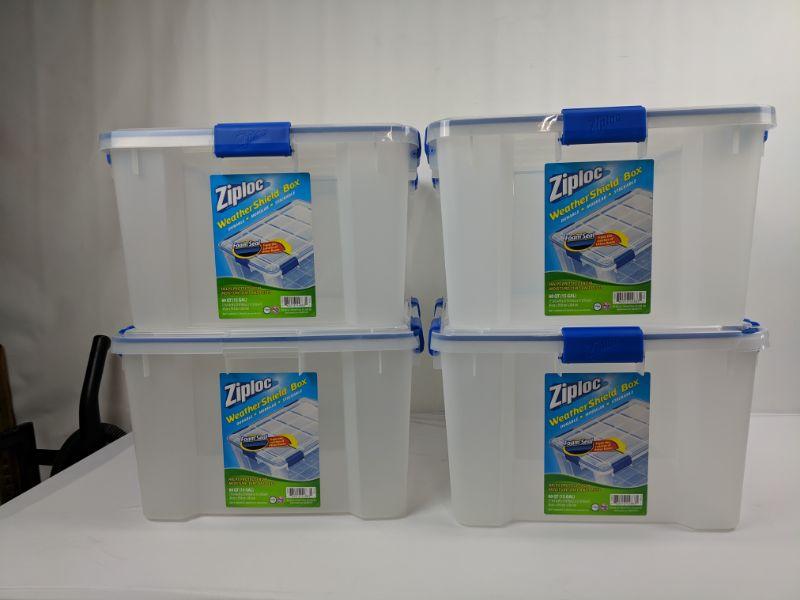 4 Iris Ziploc Weather Shield Box, 60 Qt/15 Gal, Lids Cracked/Handles Need to Be Put On in Places - New