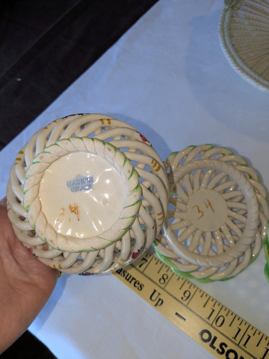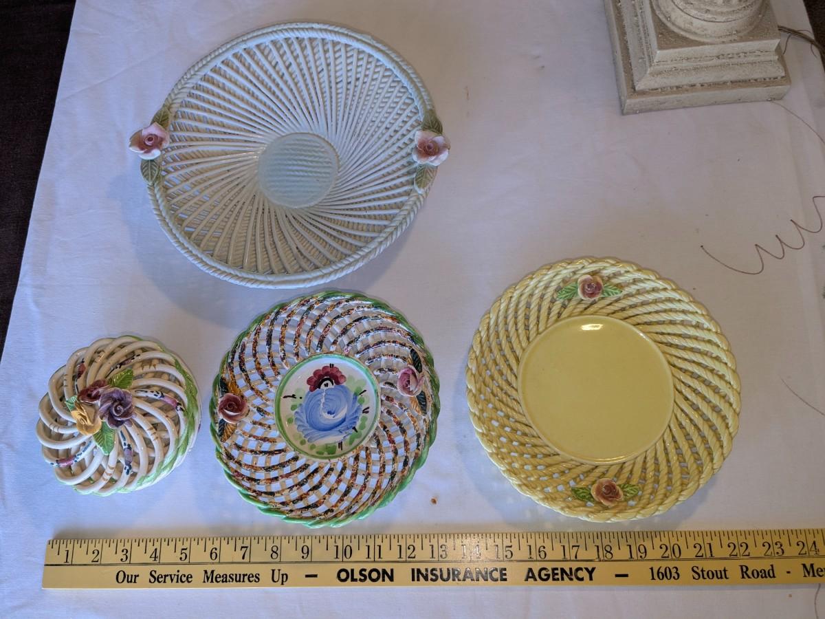 4 Italian and Spanish Vintage Porcelain Woven Dishes