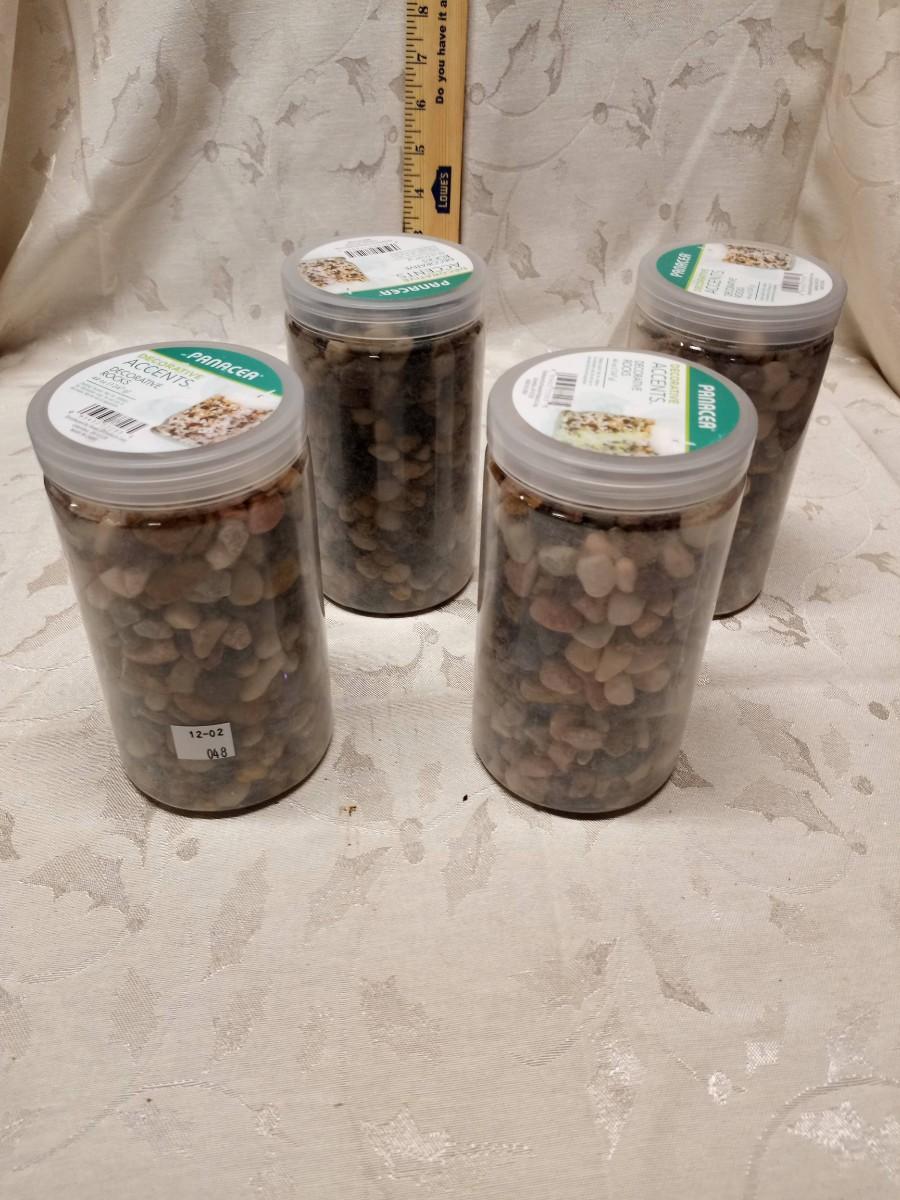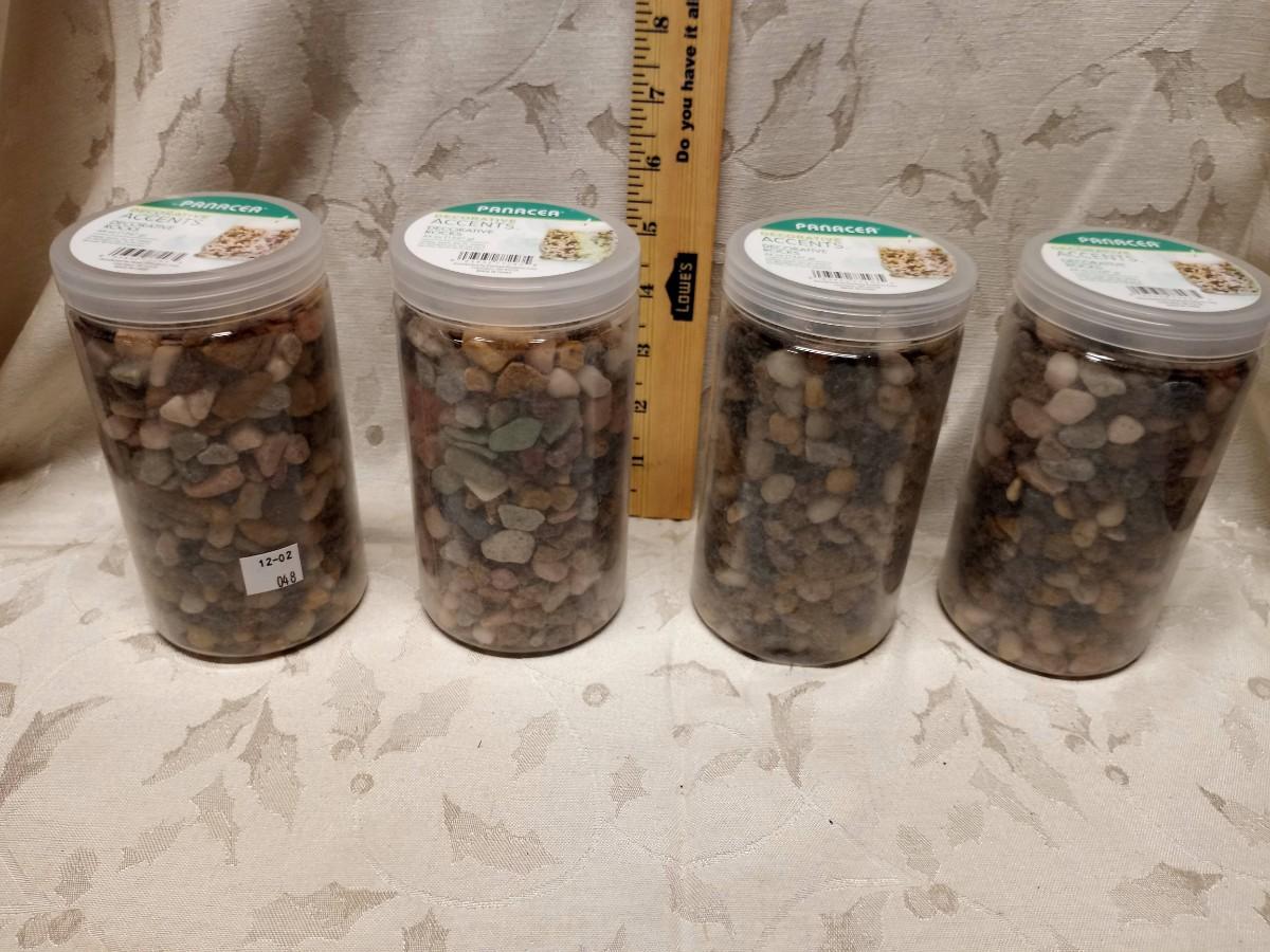 4 jars pebbles, clear lids