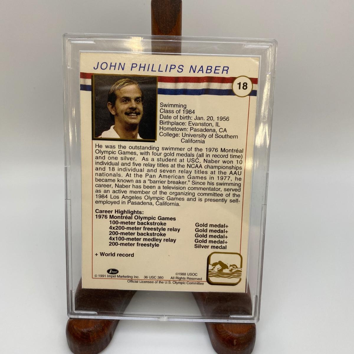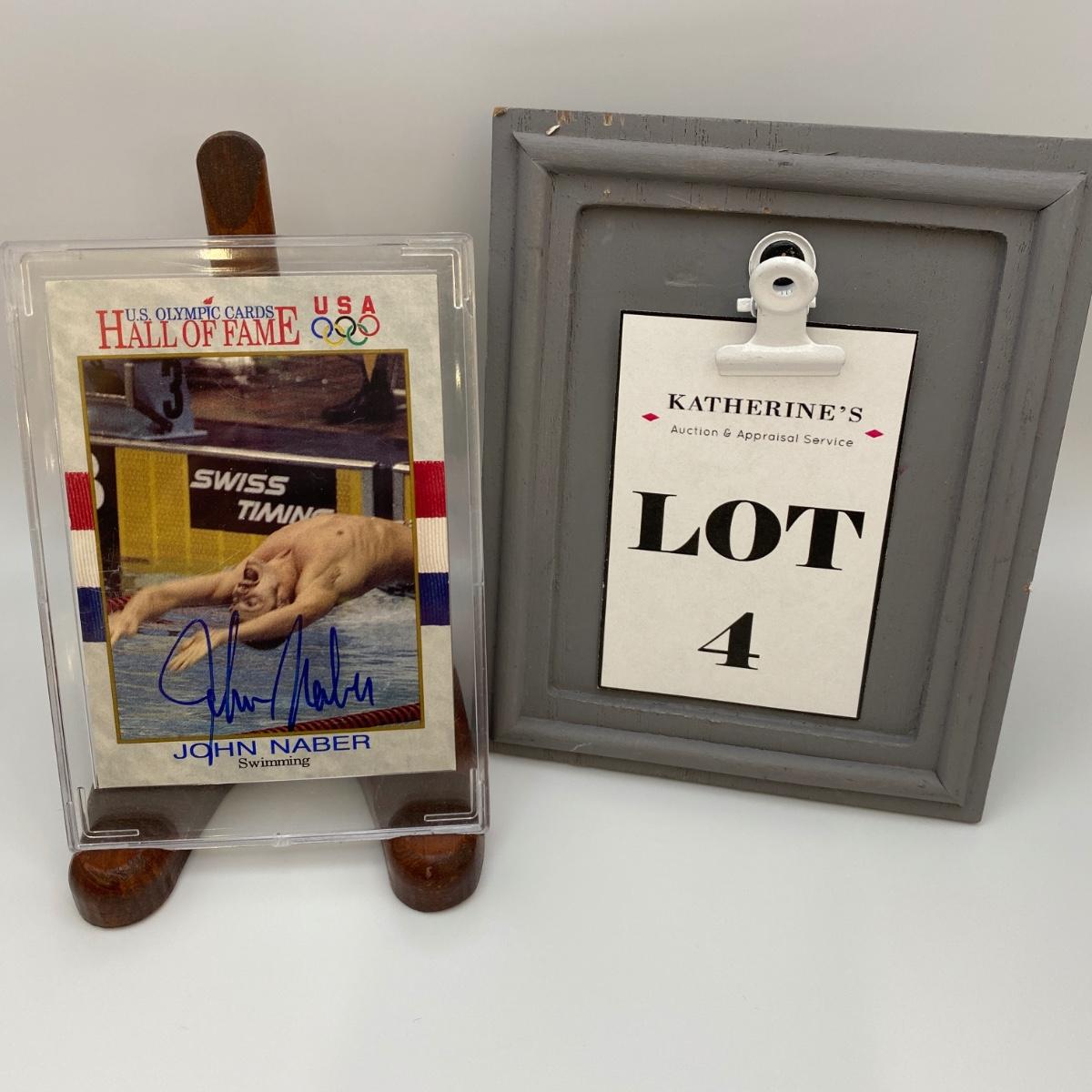 1991 John Naber US Olympic Hall of Fame Swimming card Signed with no Certificate of Authenticity, item is assumed authentic however not guaranteed. Please see photos for details and condition. ::: Shipping is available on this lot. If you require shipping you must let us know at the close of the auction. We will coordinate with you after the item has been won. Shipping fees will include insurance up to or exceeding the value of all items being mailed. If you have any questions regarding this lot please contact the auctioneer either via this website, by direct email or by phone. PICK UP TIMES and other important information can be found in the TERMS and DESCRIPTION of the auction. Please take a look for pertinent information. Thanks!