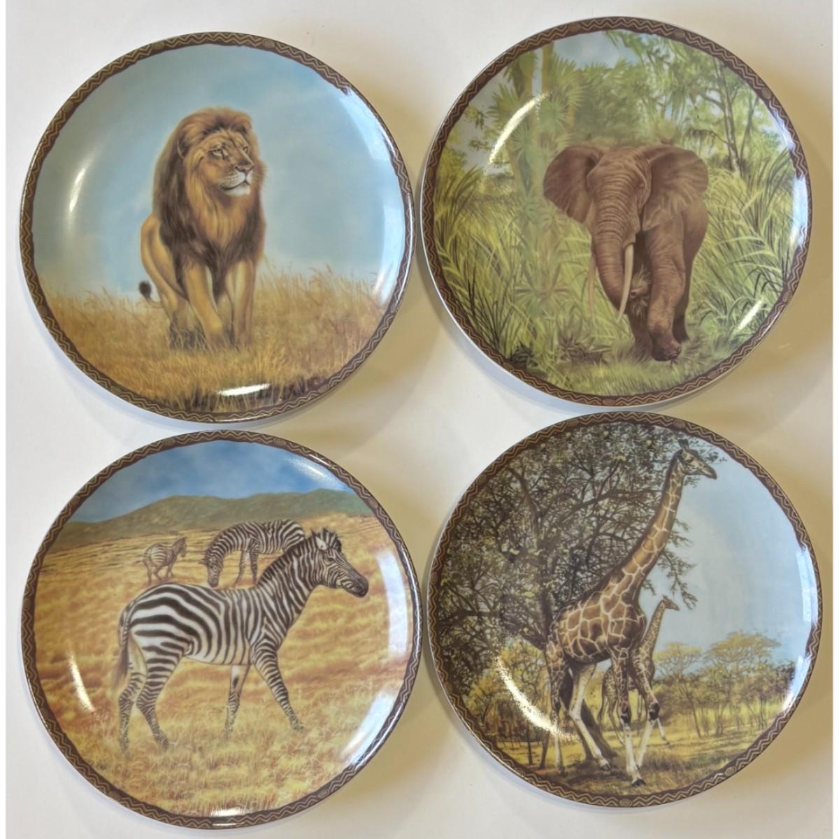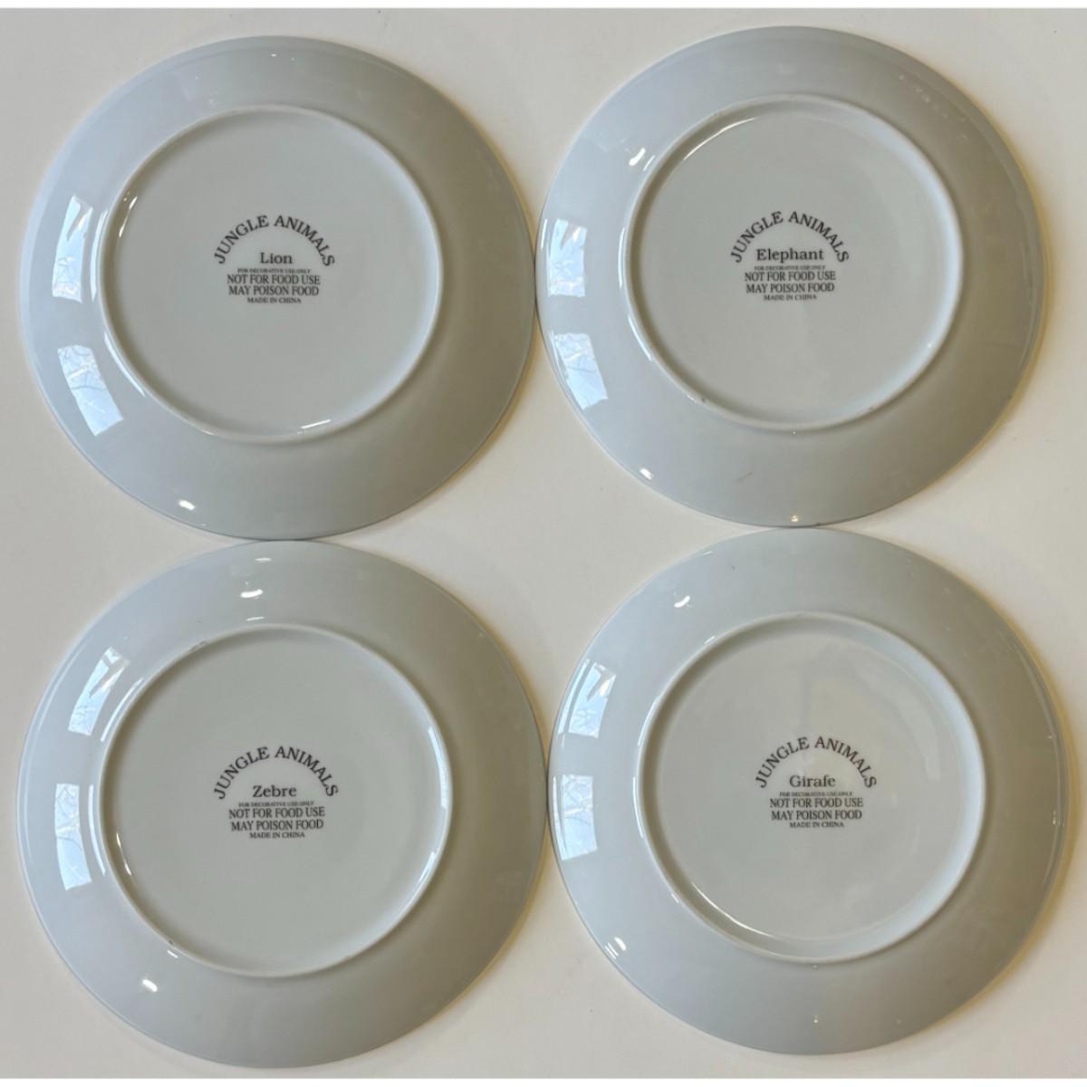 4 Jungle Animals Ceramic Plates w/ Hangers Elephant Giraffe Zebra Lion Africa