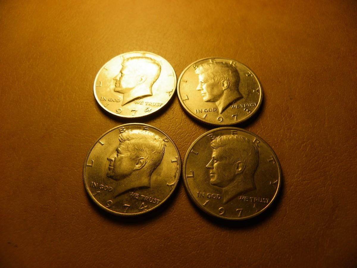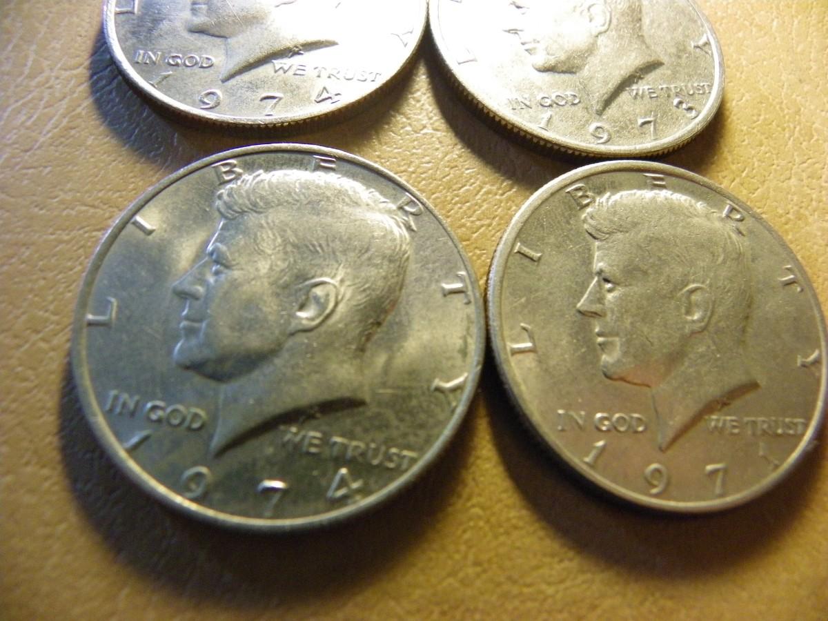 4- Kennedy 1974,71,73. half dollar coins.