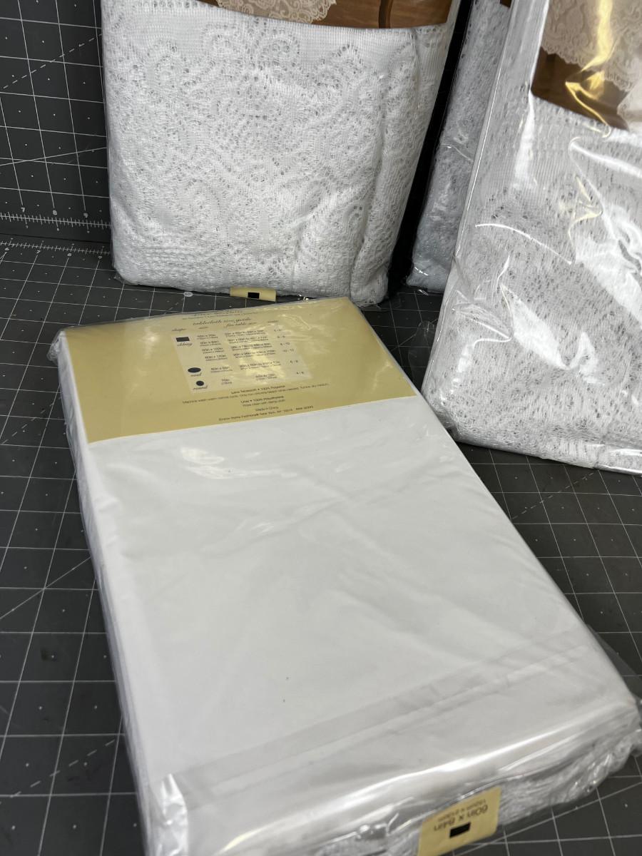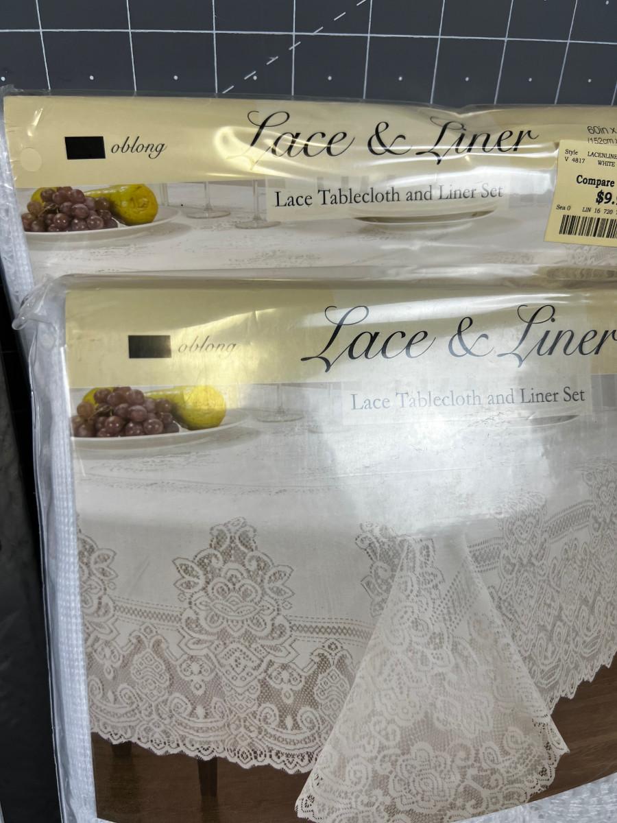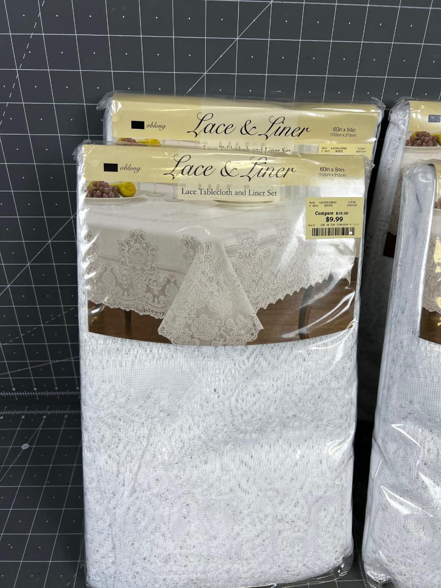 4 Lace and Liner Table Cloth Sets. WHITE