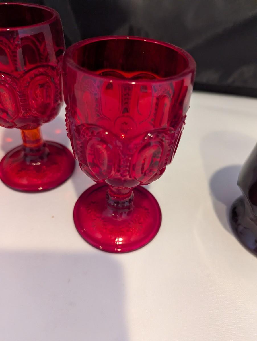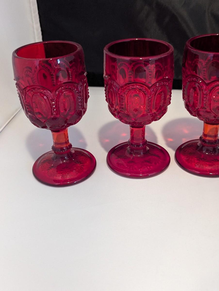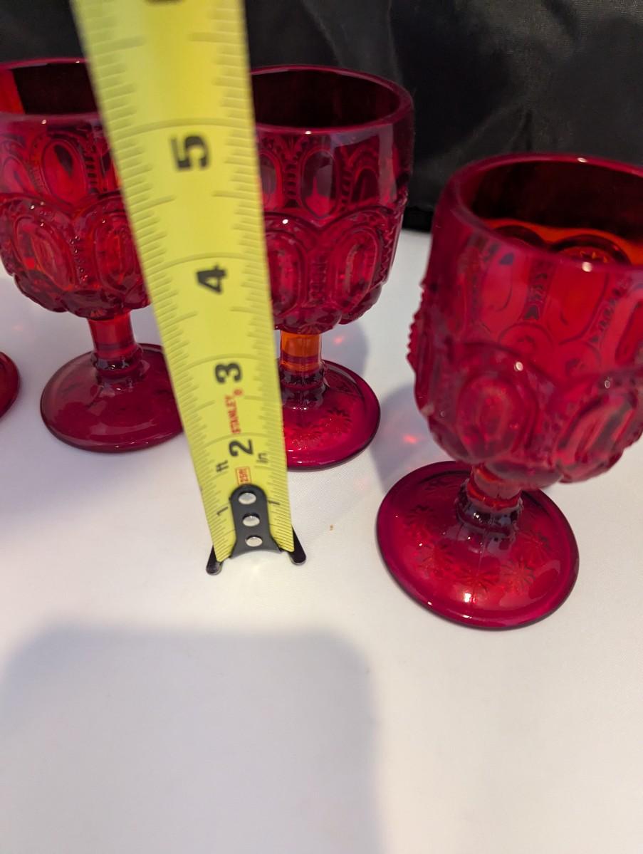 4 - LE Smith Ruby Red Moon & Stars Wine Glasses 4 1/2" Tall - Georgian Ruby Red Glasses #5 (DR)