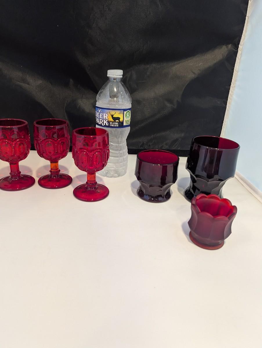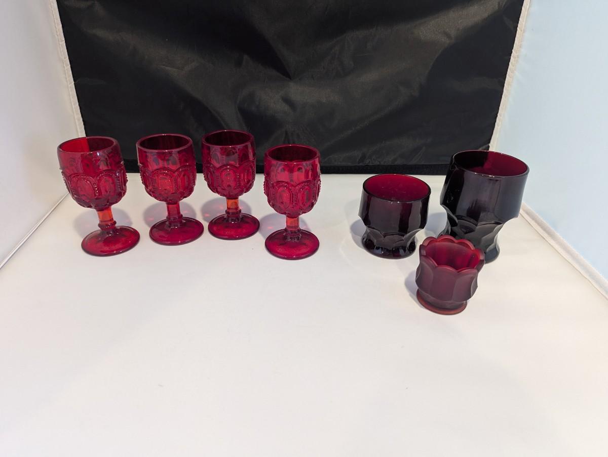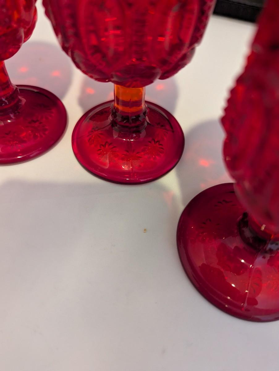 4 - LE Smith Ruby Red Moon & Stars Wine Glasses 4 1/2" Tall - Georgian Ruby Red Glasses #5 (DR)