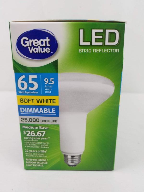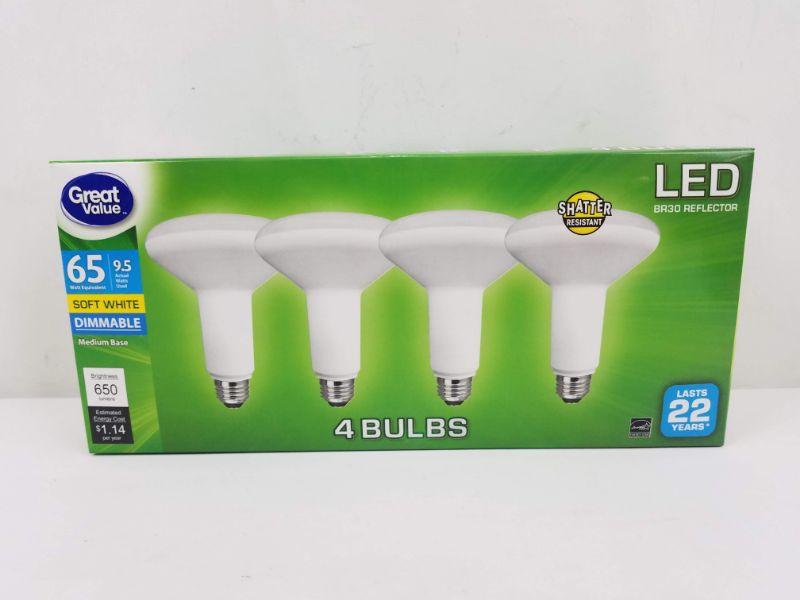 4 LED Light Bulbs 65W Equivalent, Soft White, Dimmable - New