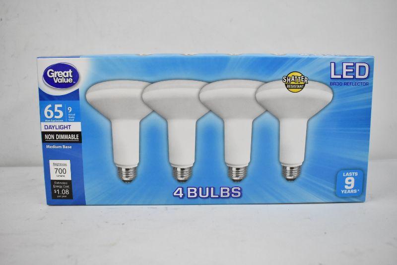 4 LED Light Bulbs 9 Watts BR30 Reflector Daylight Medium Base by Great Value - New