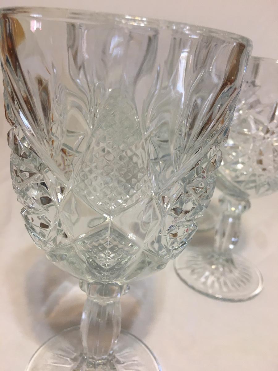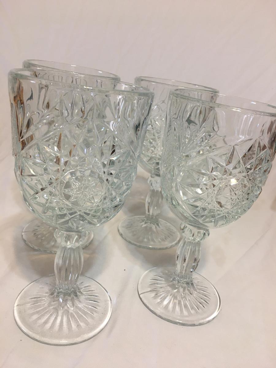 4 Libbey Hobstar Heavy Cut Wine Glasses /Goblets 12 oz Star of David Stemware