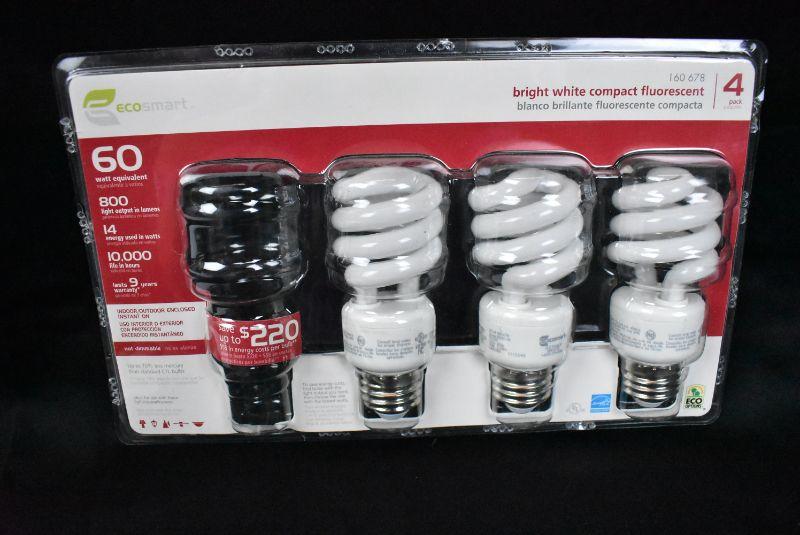 4 Lightbulbs in 2 open packages: CFL Soft White & Ecosmart bright white
