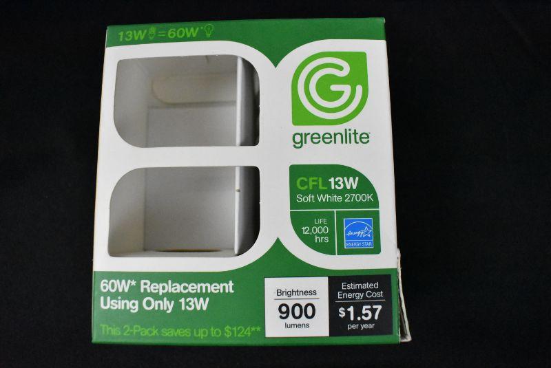 4 Lightbulbs in 2 open packages: 1 greenlite CFL13W Soft White & 3 Ecosmart bright white