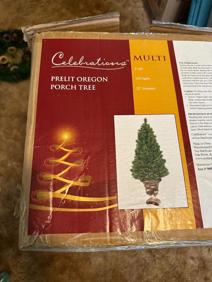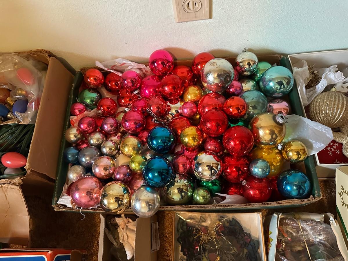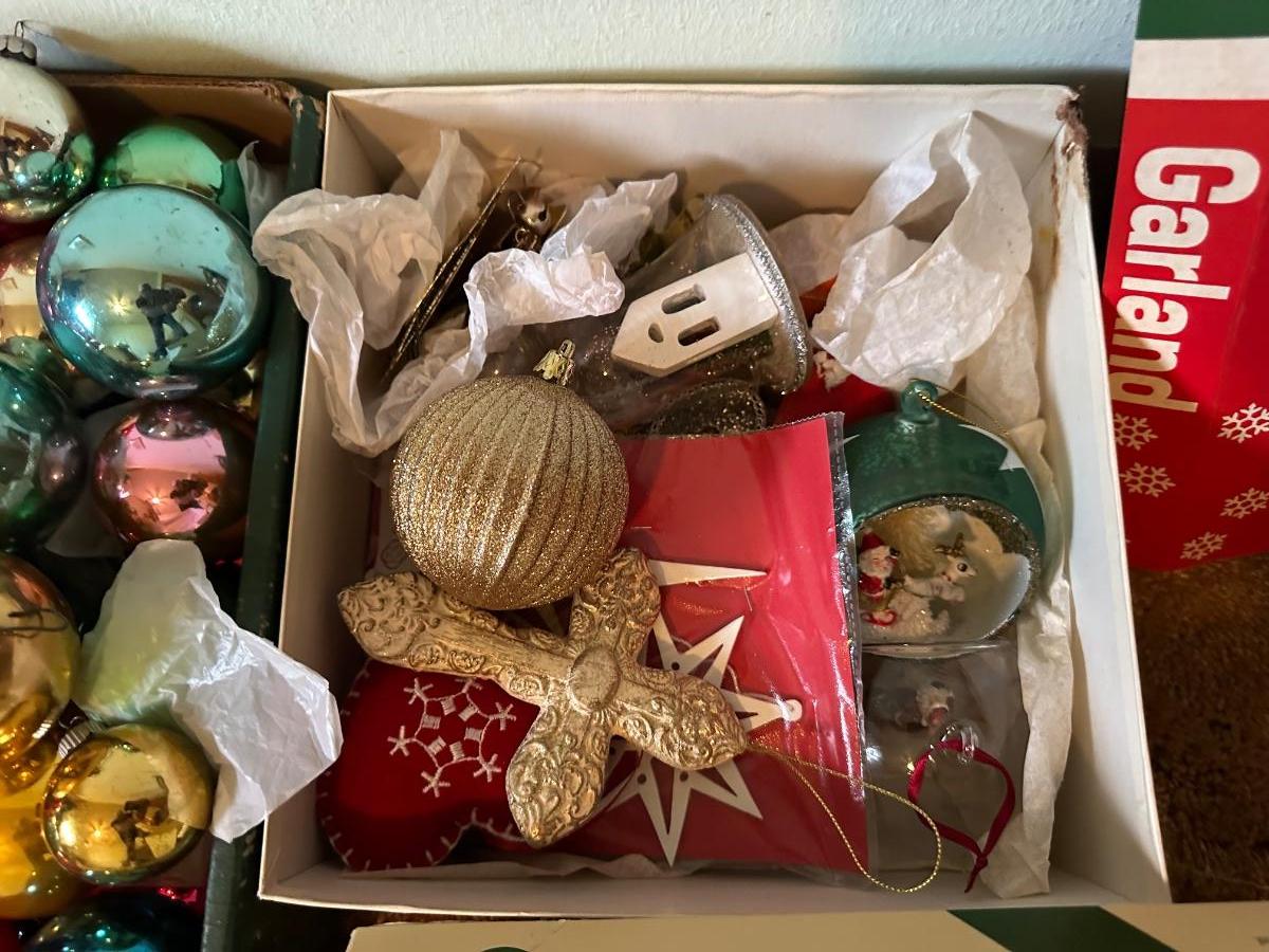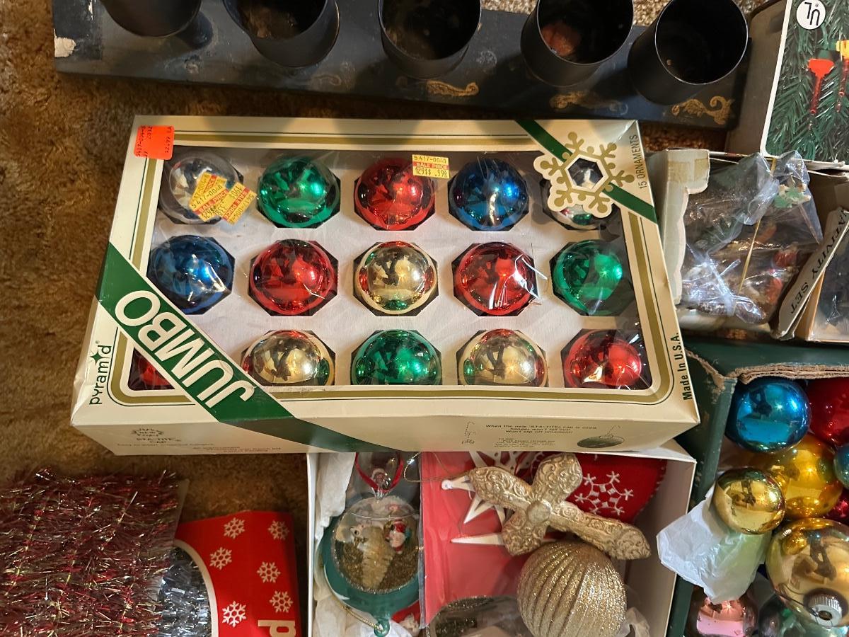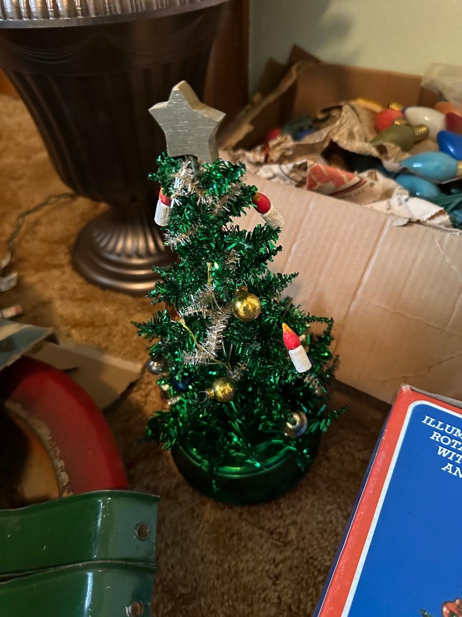 4’ LIGHTED CHRISTMAS TREE, VINTAGE LIGHTS, ORNAMENTS AND MUCH MORE