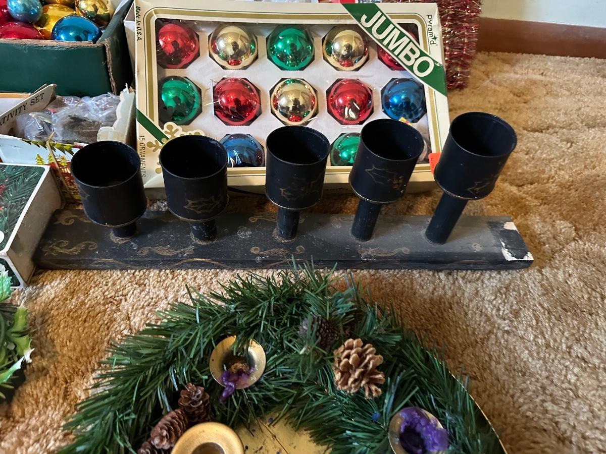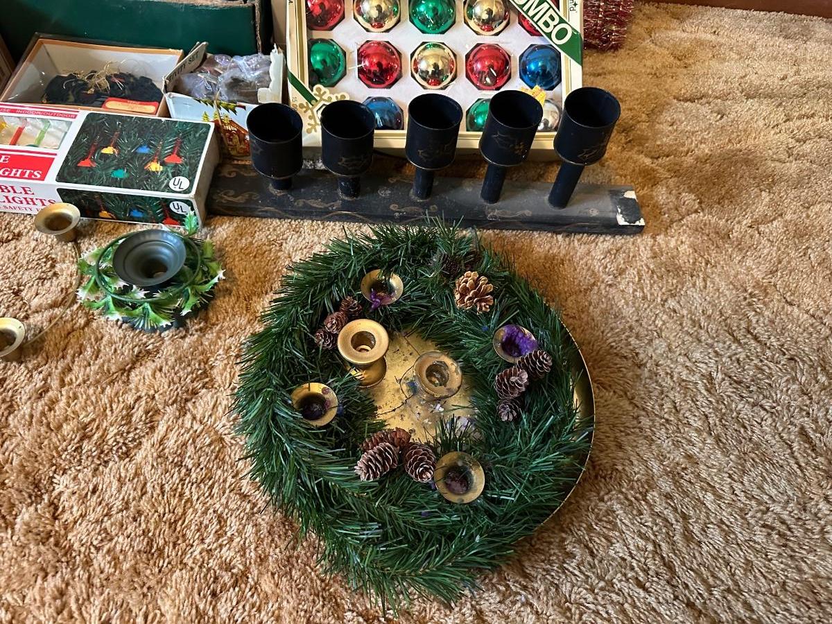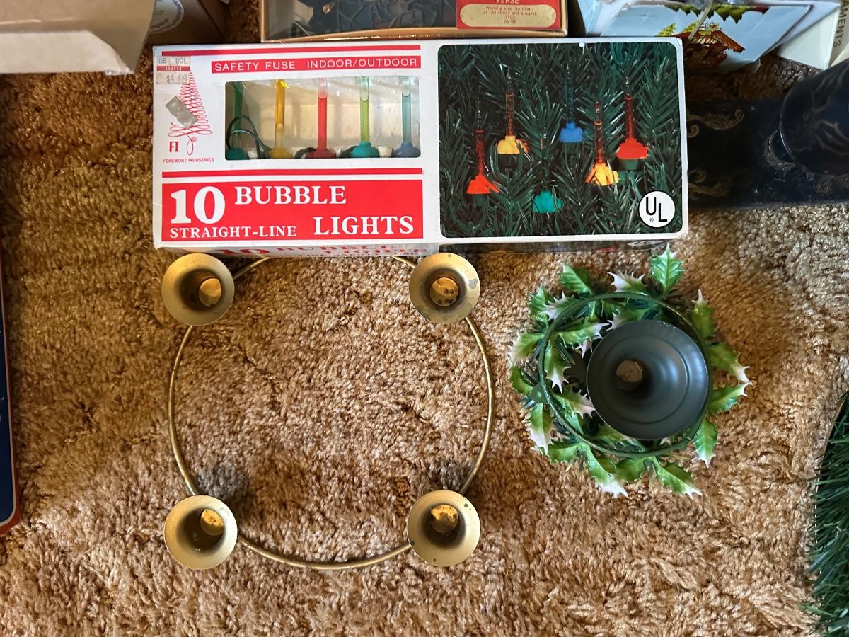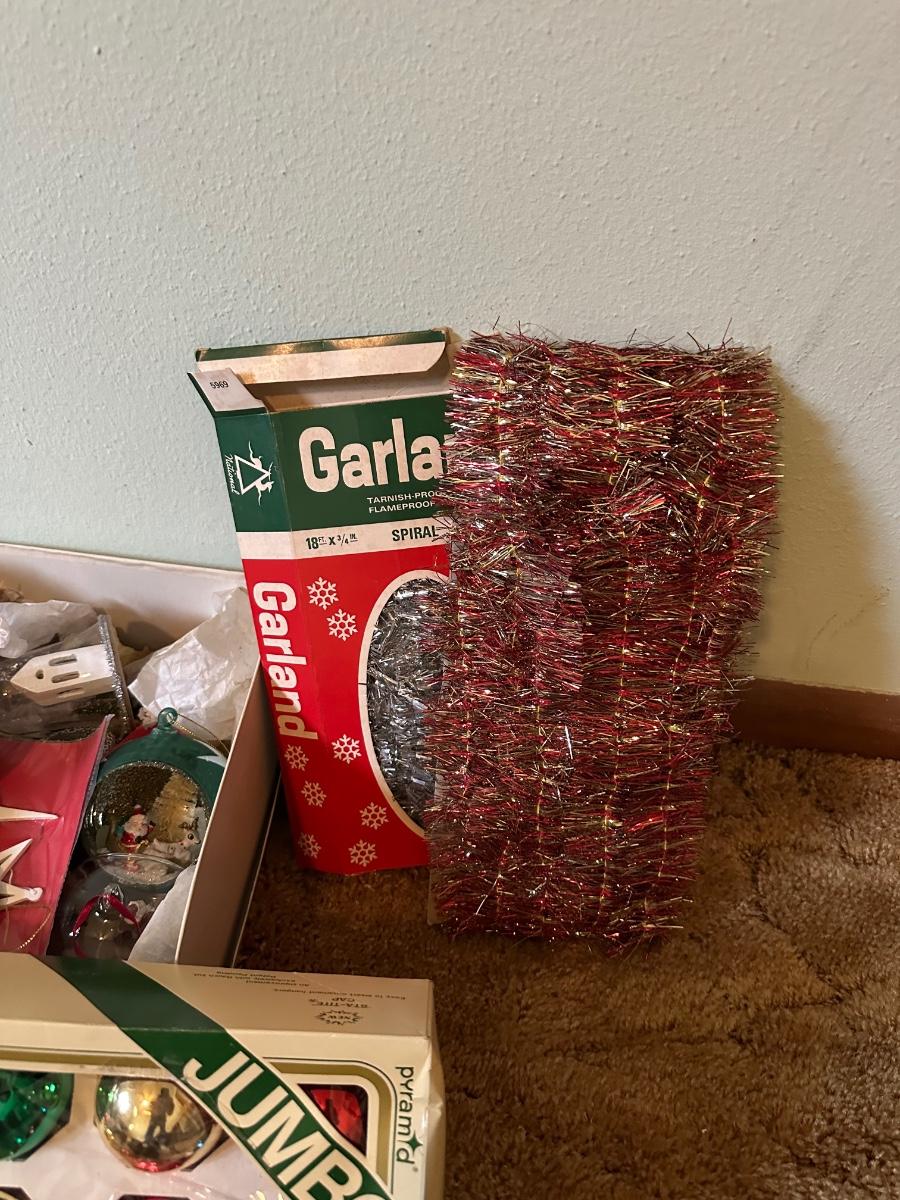 4’ LIGHTED CHRISTMAS TREE, VINTAGE LIGHTS, ORNAMENTS AND MUCH MORE