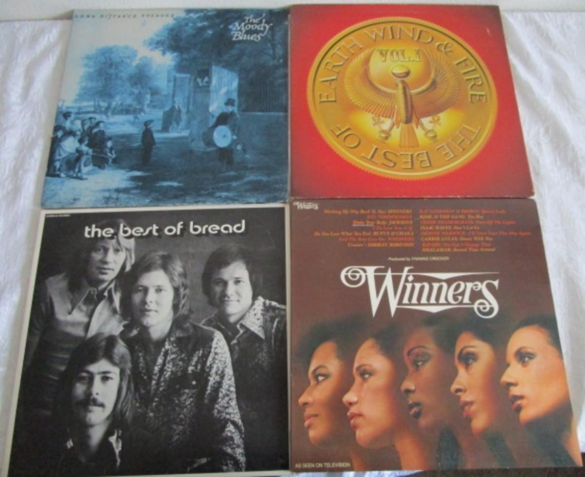 4 LP records, Moody Blues, Earth Wind & Fire, Bread, Winners (collection of artists)