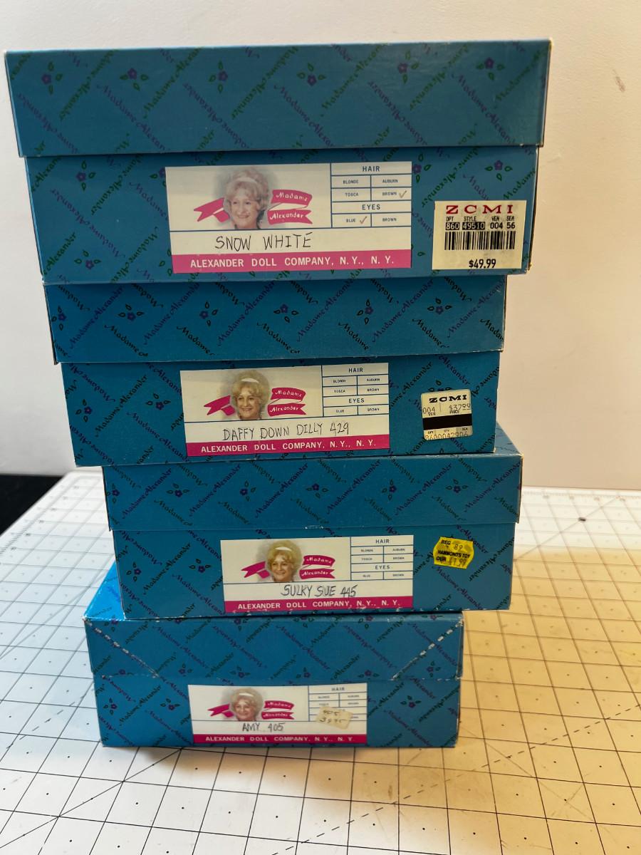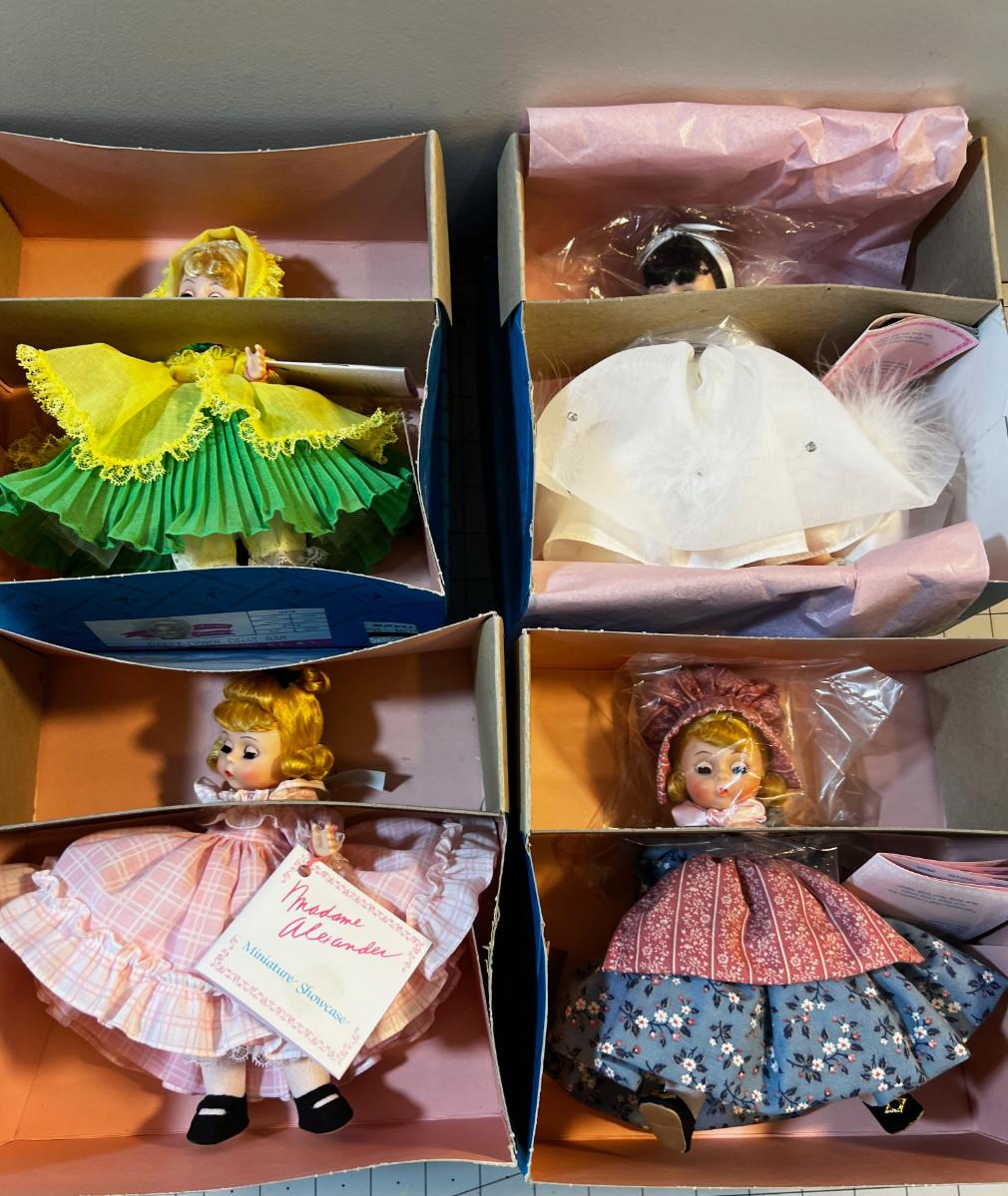 (4) Madam  Alexander Country Dolls 7": Snow White, Daffy Down Dilly, Sulky Sue, Amy