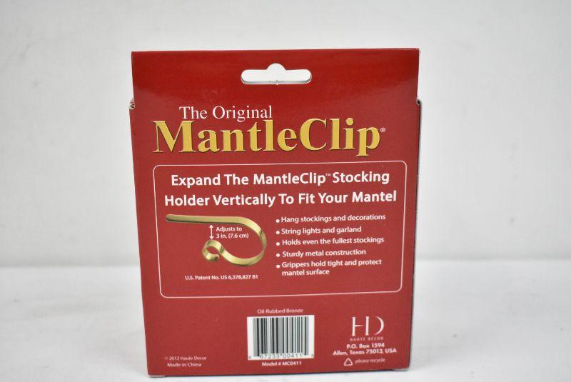 4 Mantle Clips for Stockings, Garland, Lights, Oil-Rubbed Bronze Colored - New