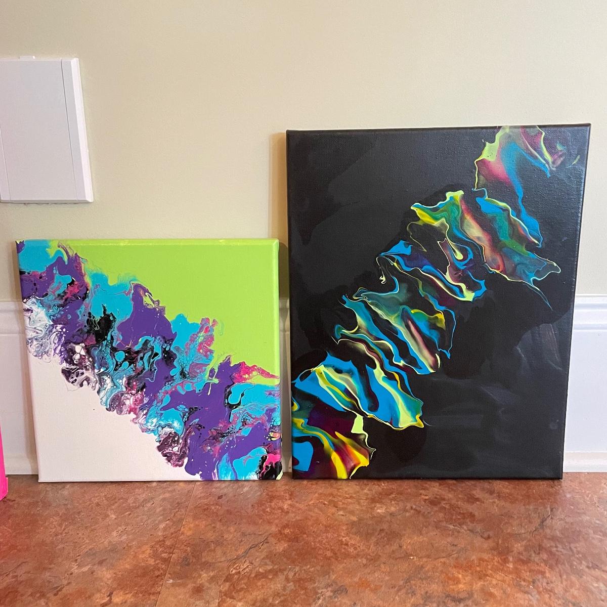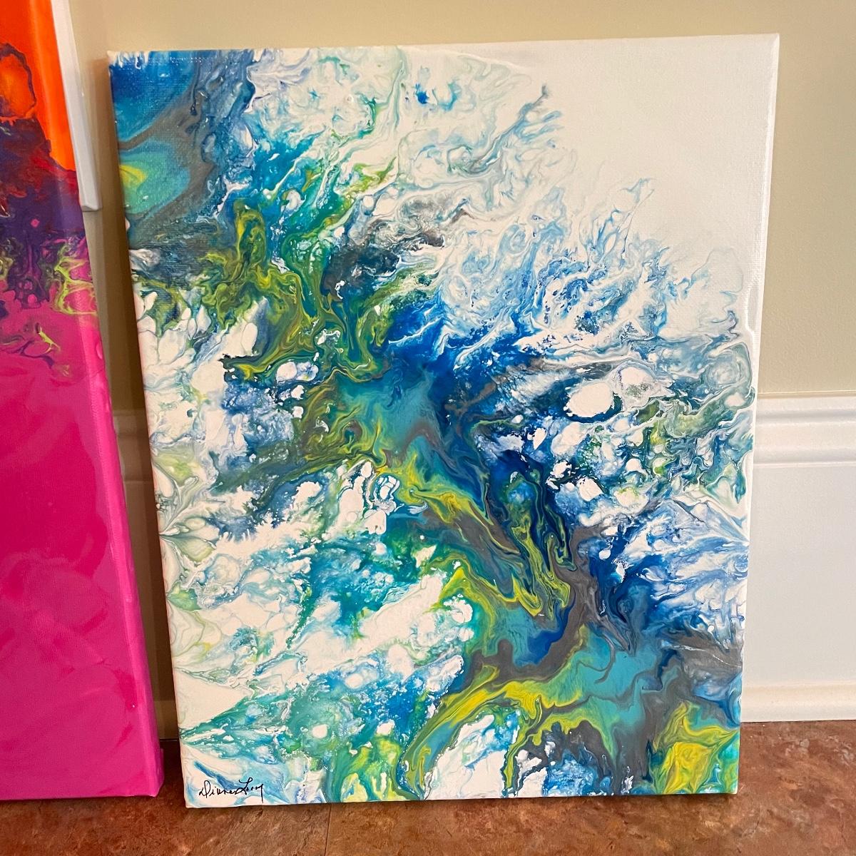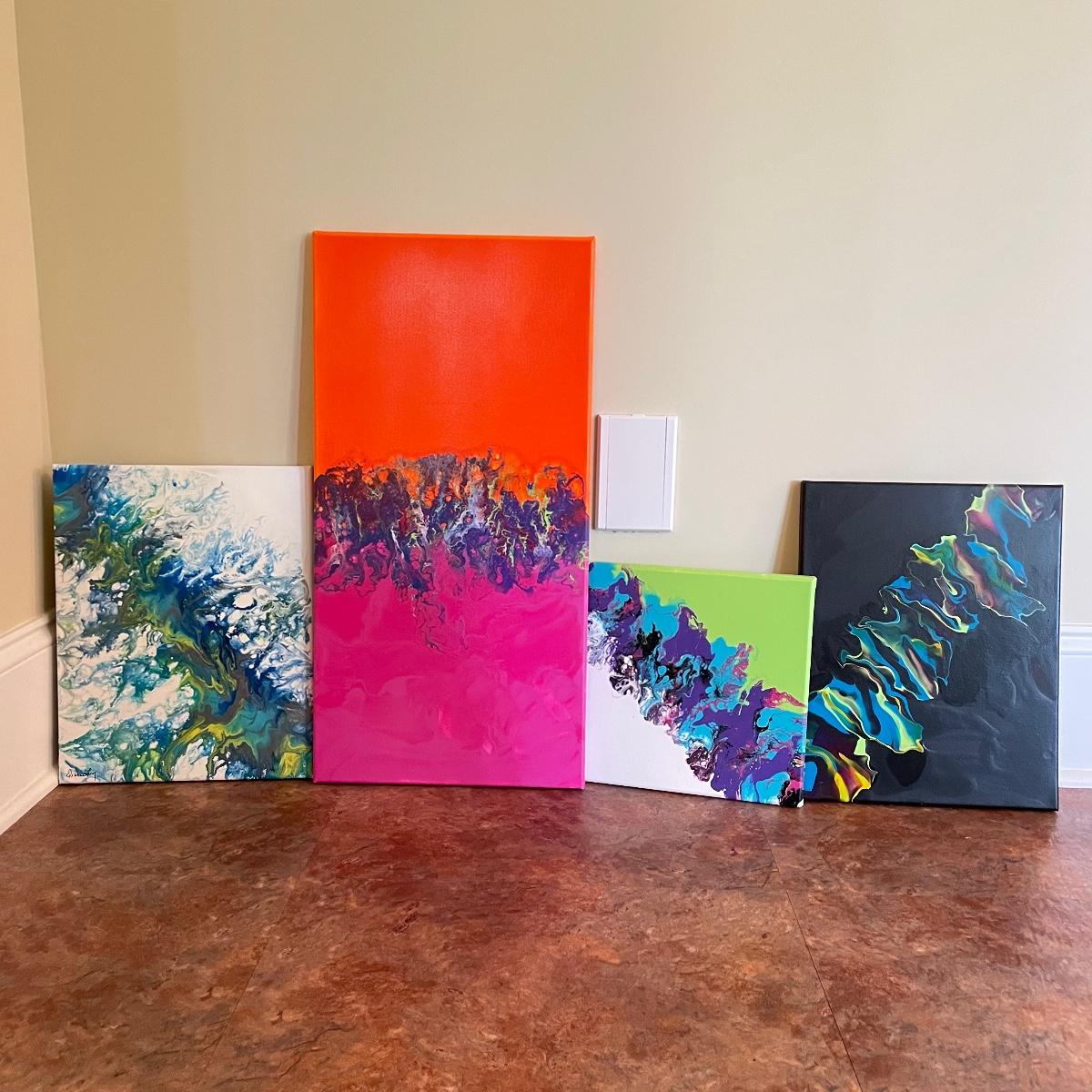 4 Marbled Abstract Oil Paintings (GR - SS)