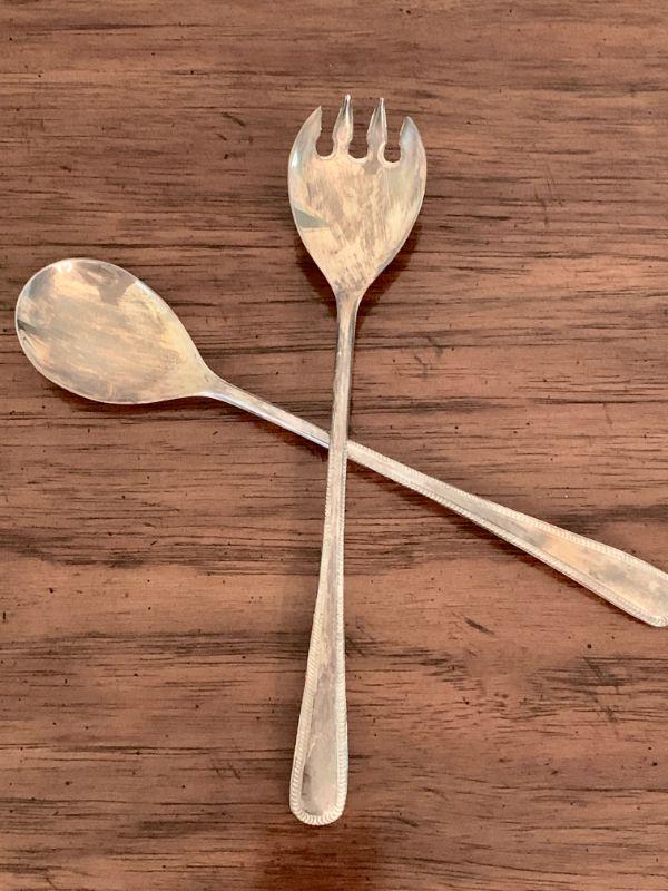 #4   MCM DORTHY C. THORPE SILVER RIMMED SALAD SET W/ONEIDA S.P. SPOON & FORK