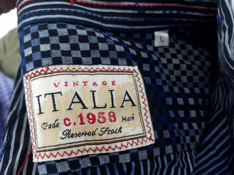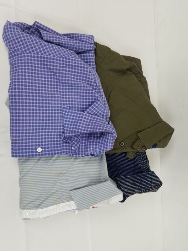 4 Men's Dress Shirts: Italia sz Large, American Eagle Large, Penguin 16.5 34/35, Gap Large