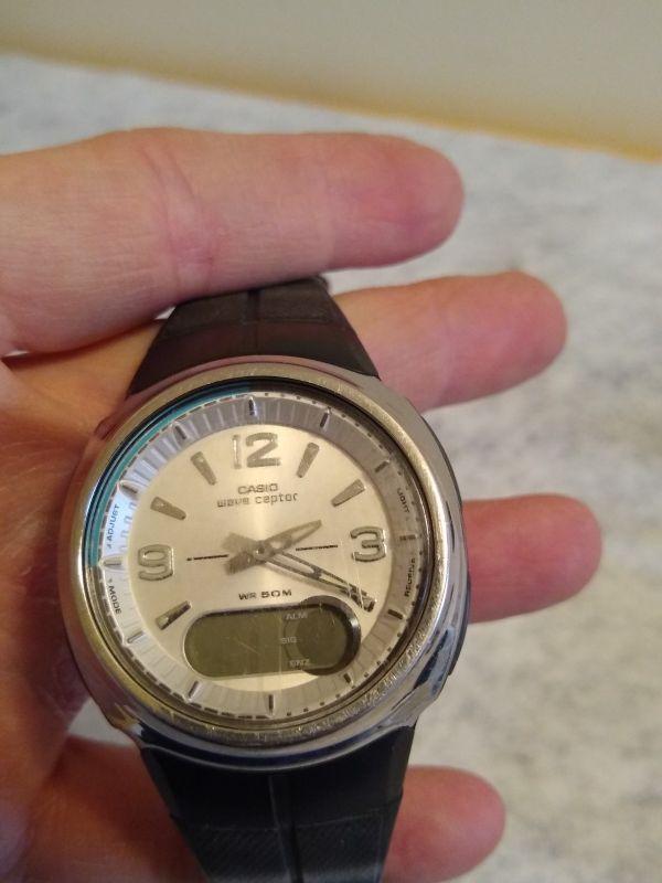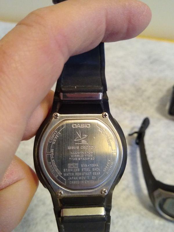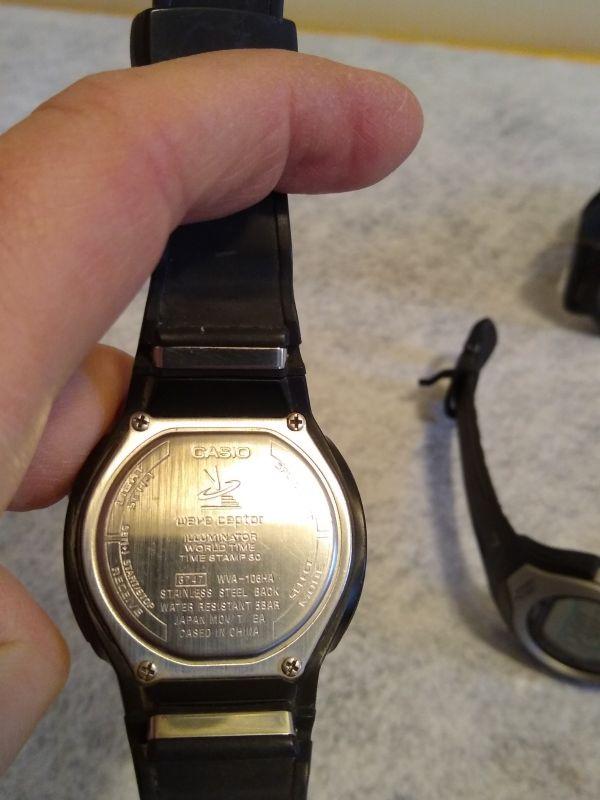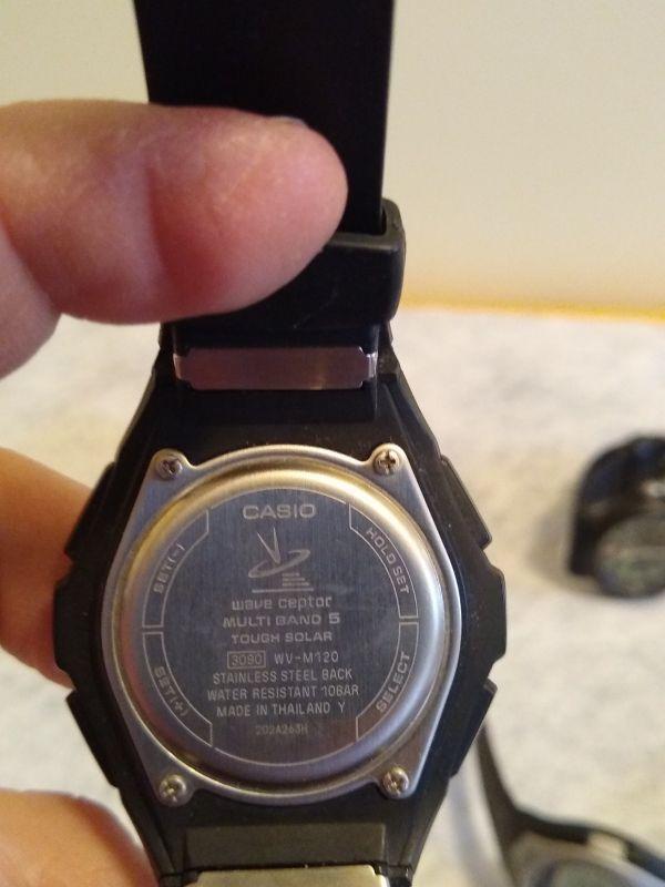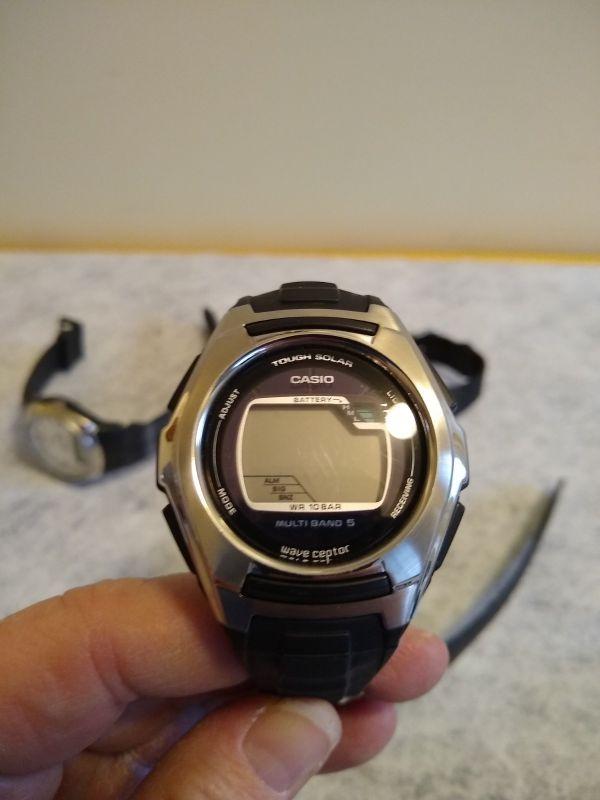 Men's Wristwatches- 3 Casio and 1 Swiss Army. Casio Tough Solar WV-M120, Casio Phys, Casio Wave Ceptor Illuminator WVA-106HA, Swiss Army Victorinox. May need batteries.