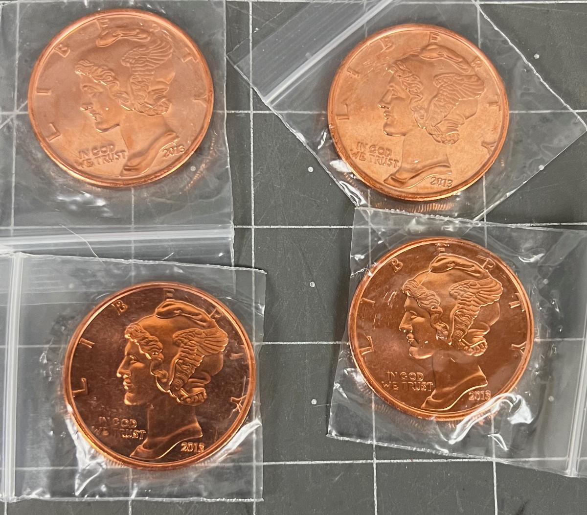 4 Mercury Head 1 Ounce Bullion Copper Coins