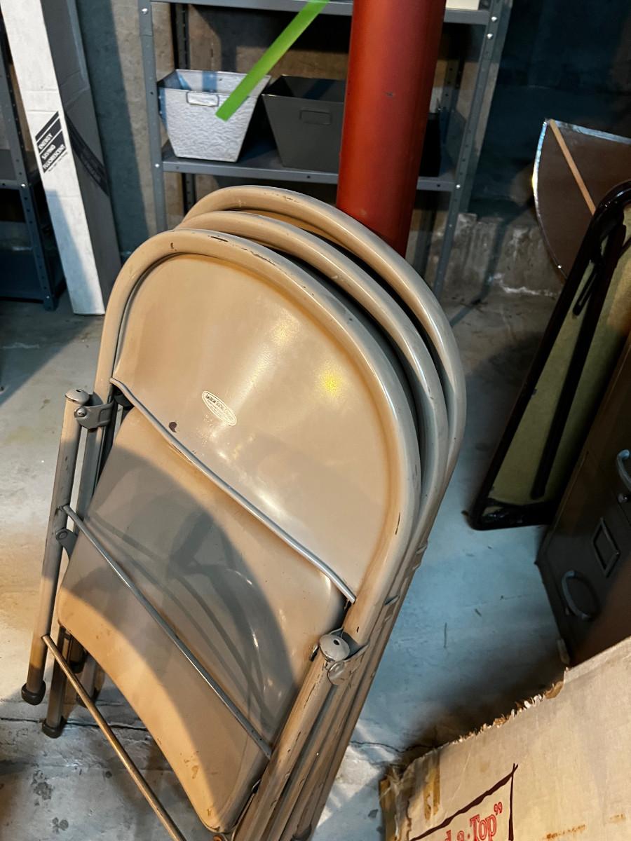 Good condition, Great for holiday Dinners when you need extra Chairs. In the Basement BE PREPARED TO TAKE UP THE STAIRS.