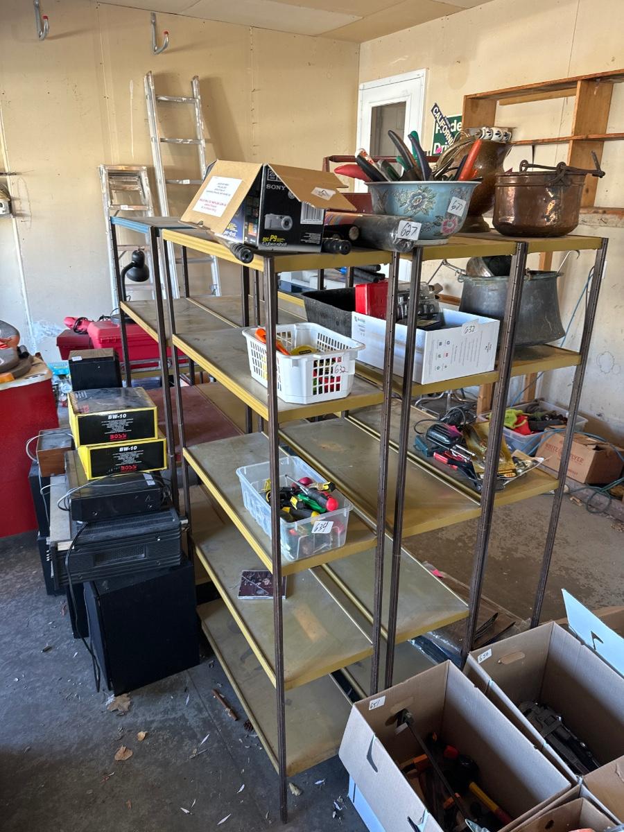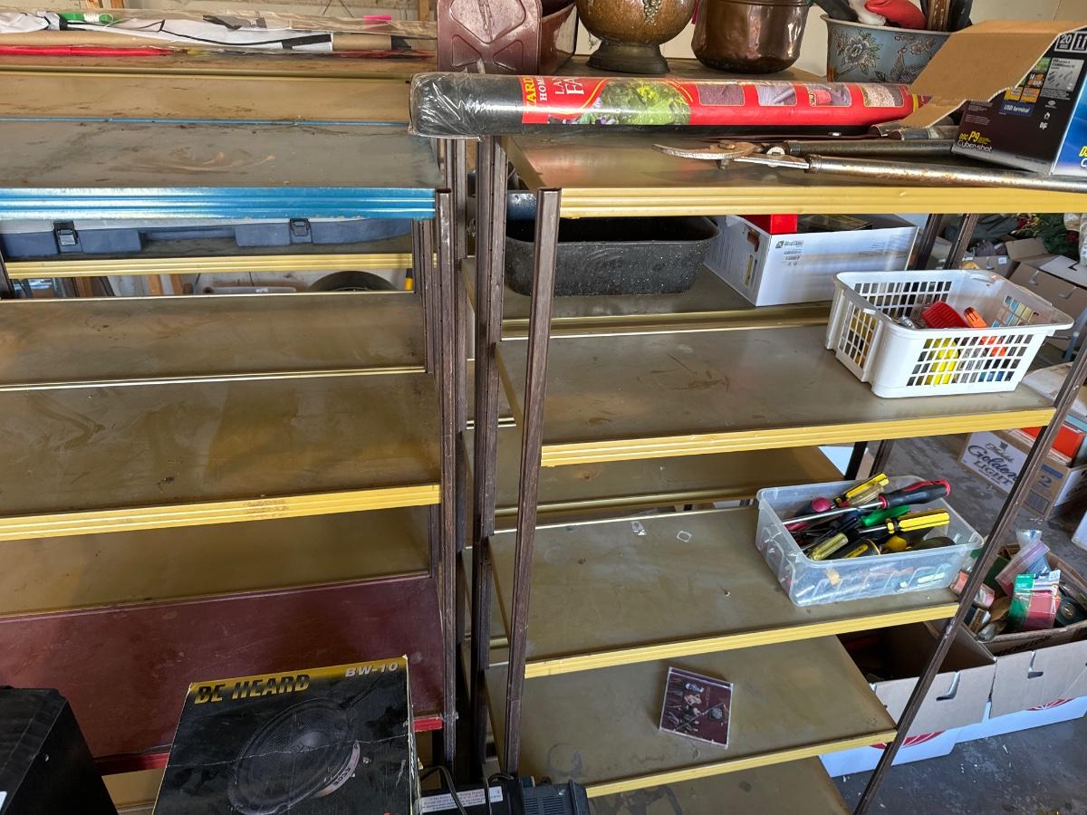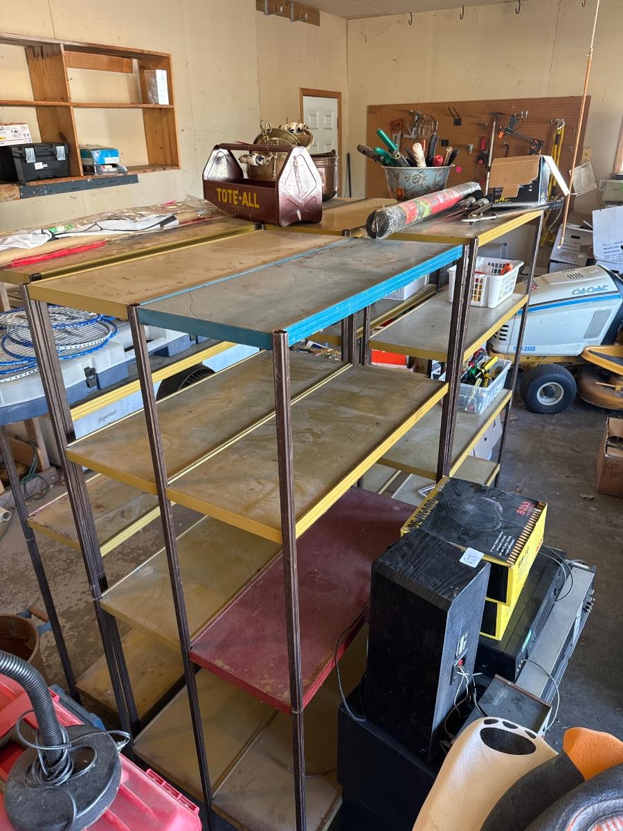 You are bidding on the 4metal shelving units only. there are a total of 4 and the first one measures 5 feet long by 5 feet tall by 24 inches deep. The next one measures 30 inches wide by 60 inches tall by 24 inches deep and the last two measure, 30 1/2 inches wide by 60 inches tall by 24 inches deep