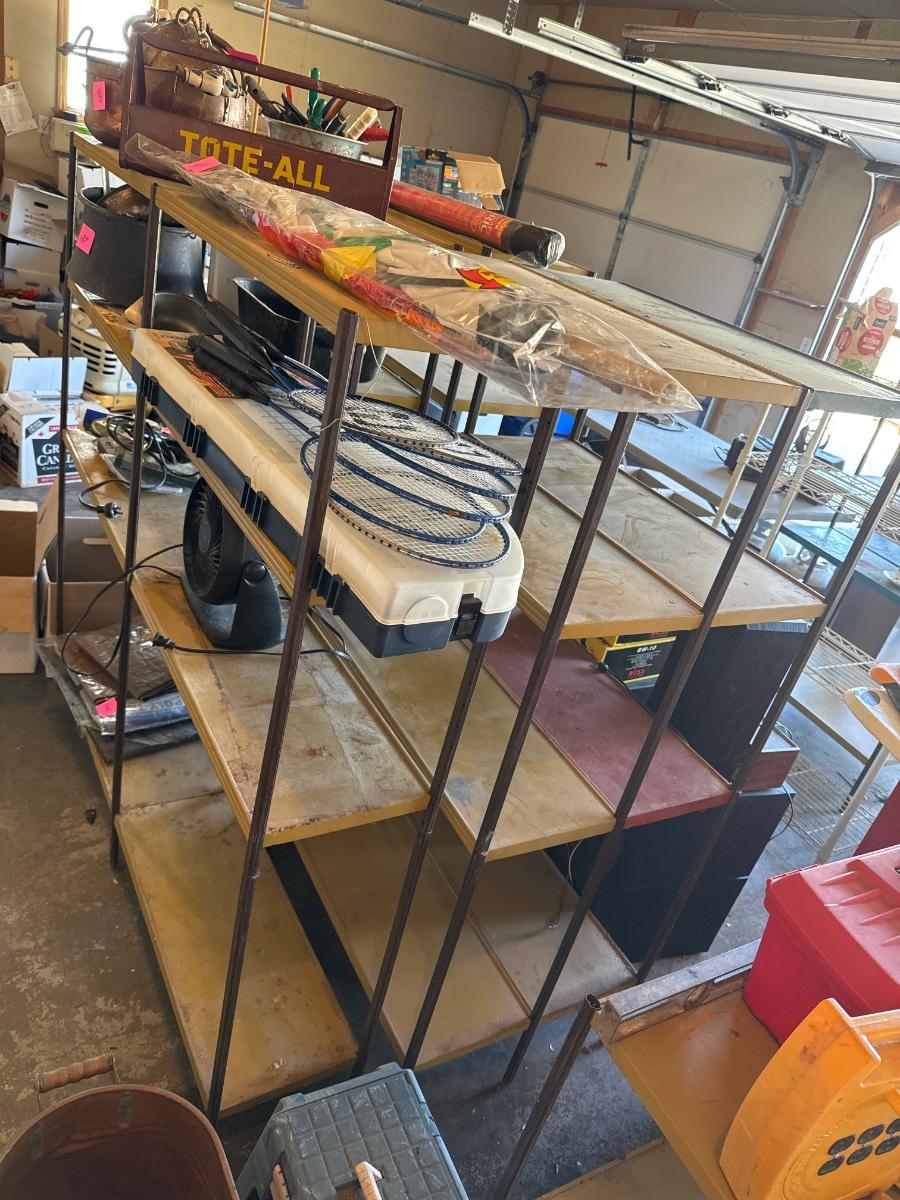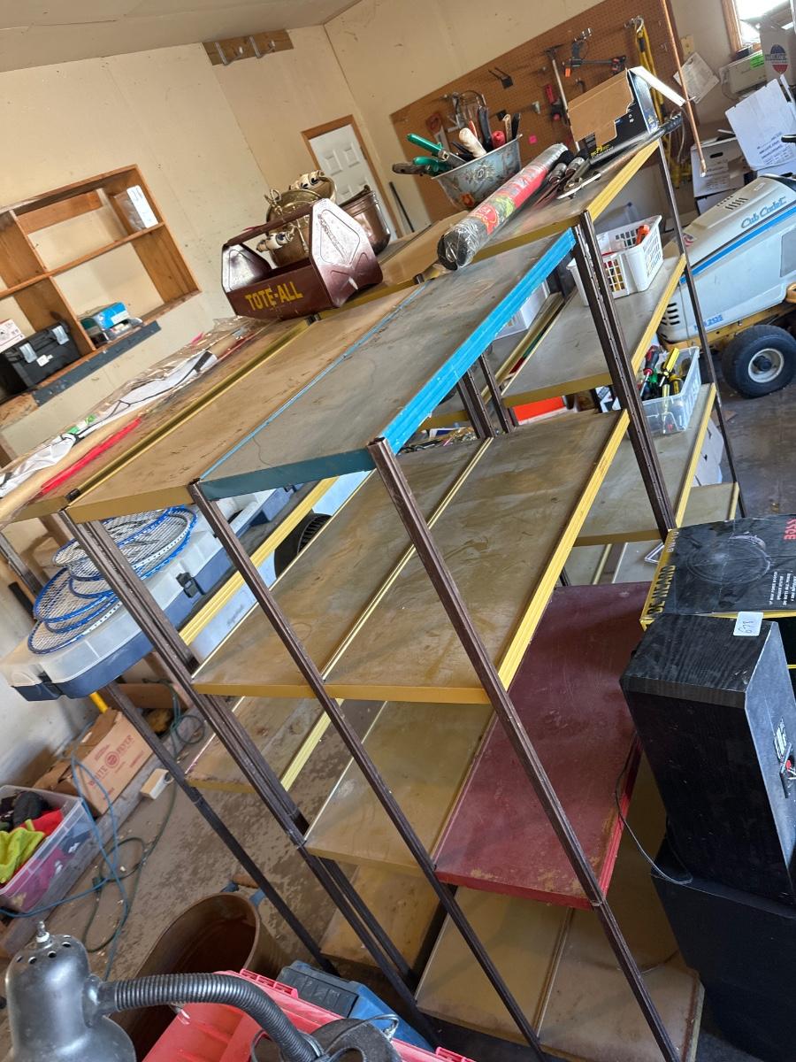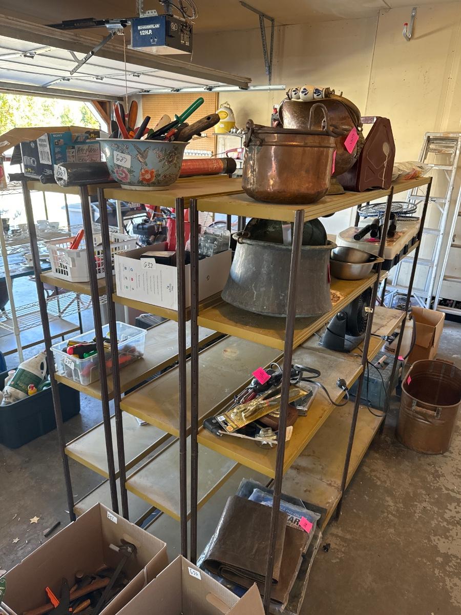 You are bidding on the 4metal shelving units only. there are a total of 4 and the first one measures 5 feet long by 5 feet tall by 24 inches deep. The next one measures 30 inches wide by 60 inches tall by 24 inches deep and the last two measure, 30 1/2 inches wide by 60 inches tall by 24 inches deep