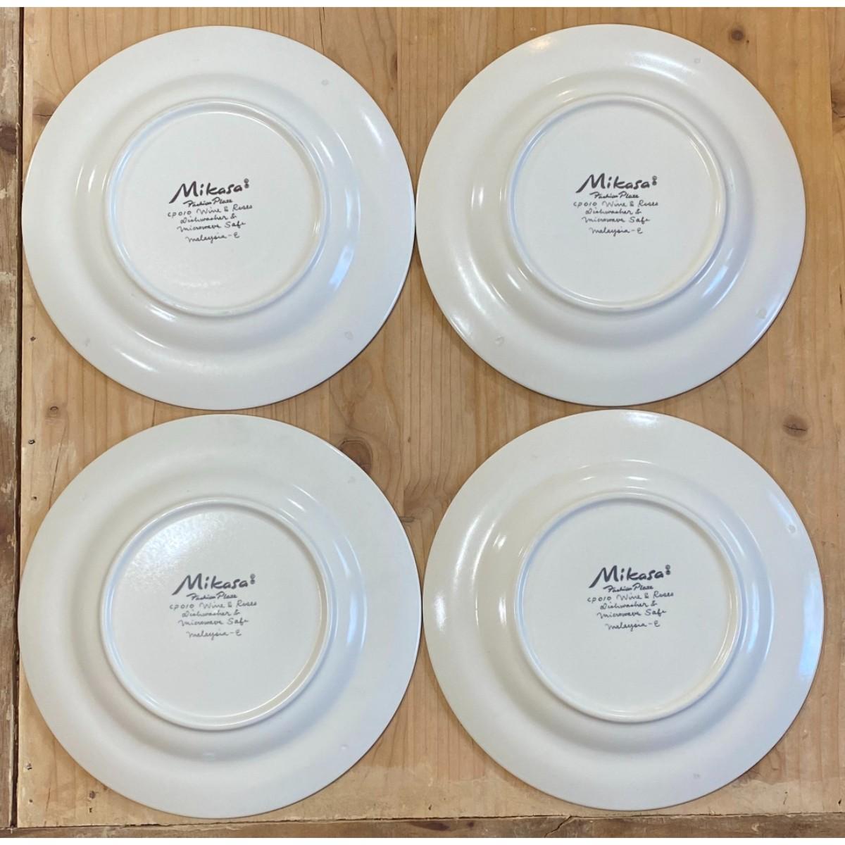 4 Mikasa Wine & Roses 8 3/8" Salad Plates CP010 Malaysia Green Blue Yellow (B)