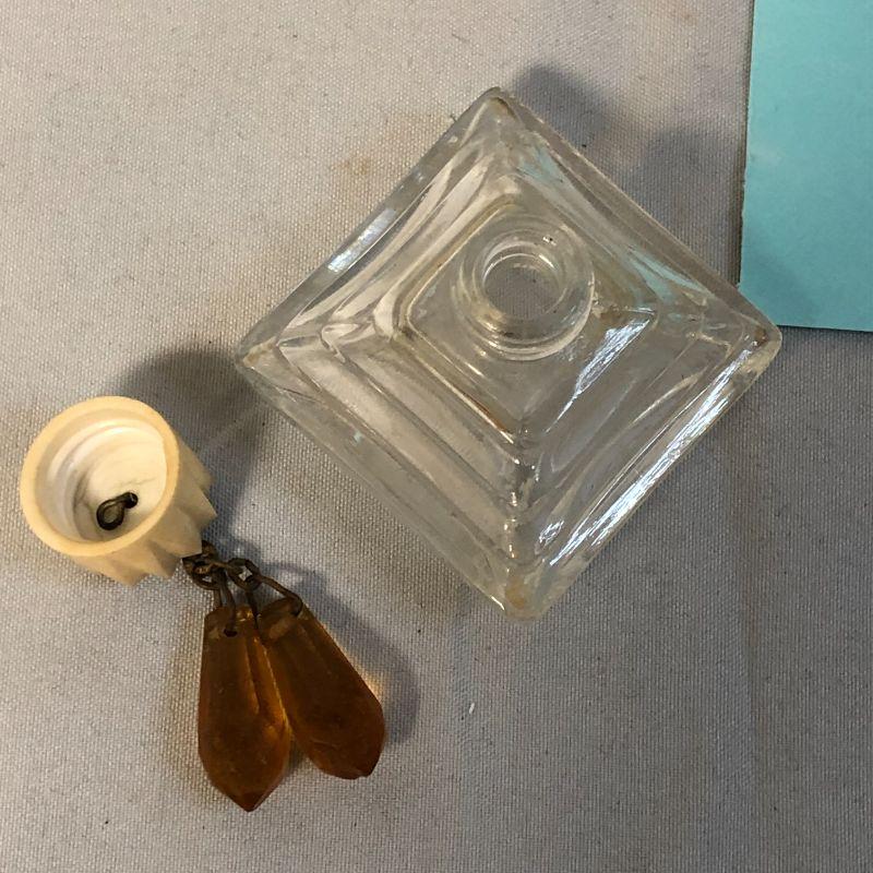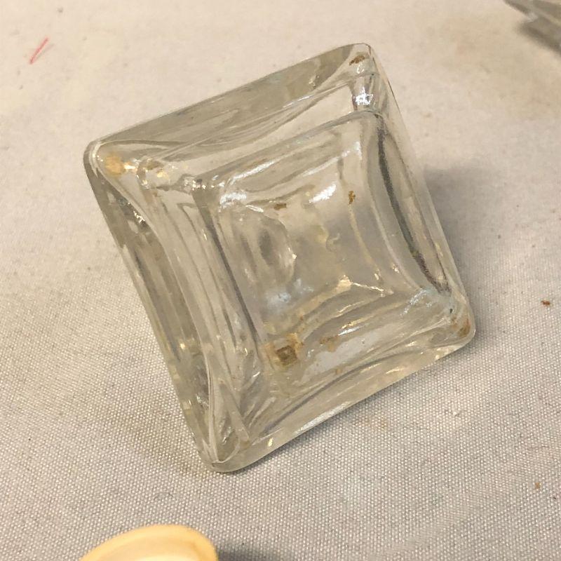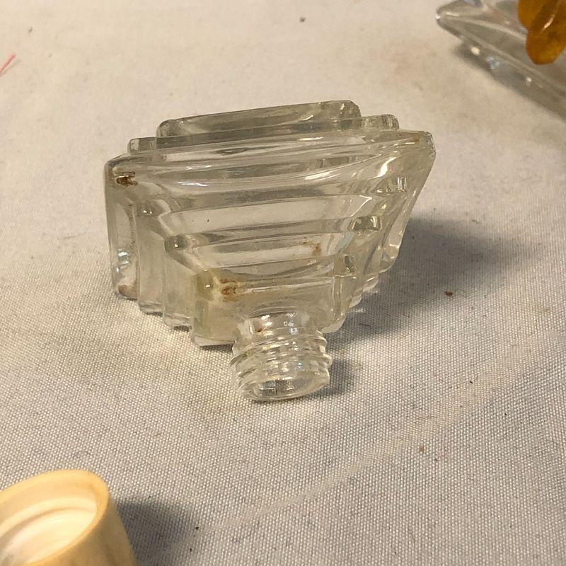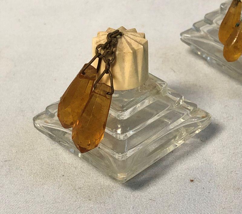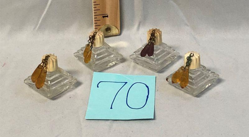 I believe that the beads on each are glass and they will sparkle nicely once cleaned up. The bottles are in excellent condition and each one is about 1.5" tall and 1.5" at the widest.