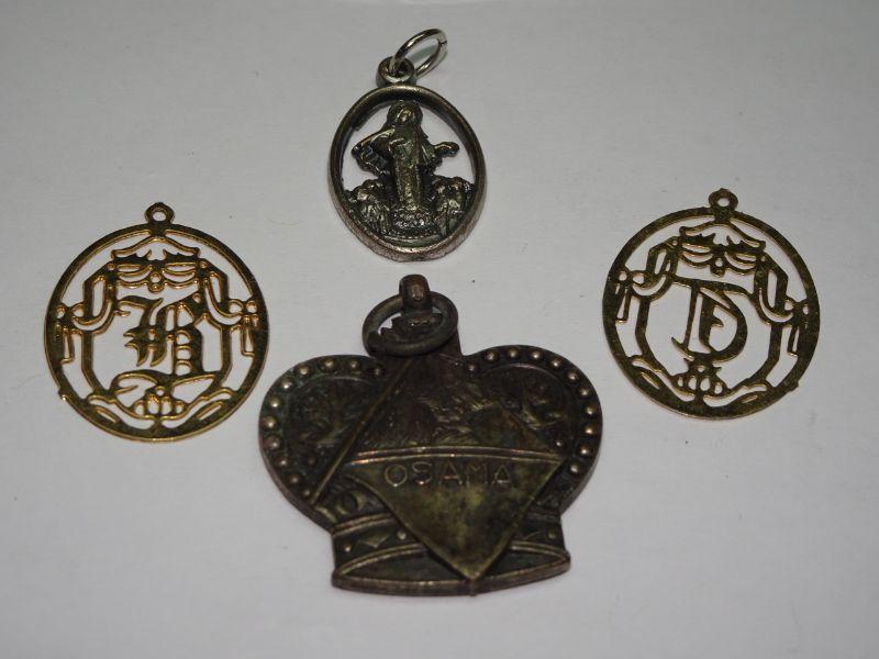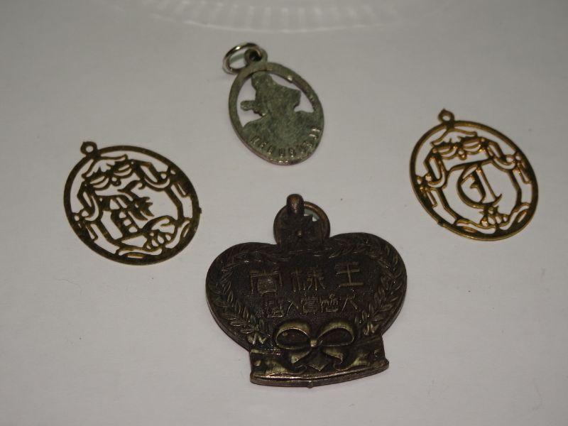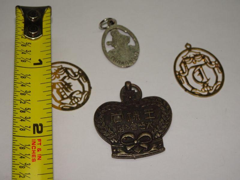 4 Misc. Vintage Charms, Letter Charms, Religious Charm, Chinese Pendant Crown Charm