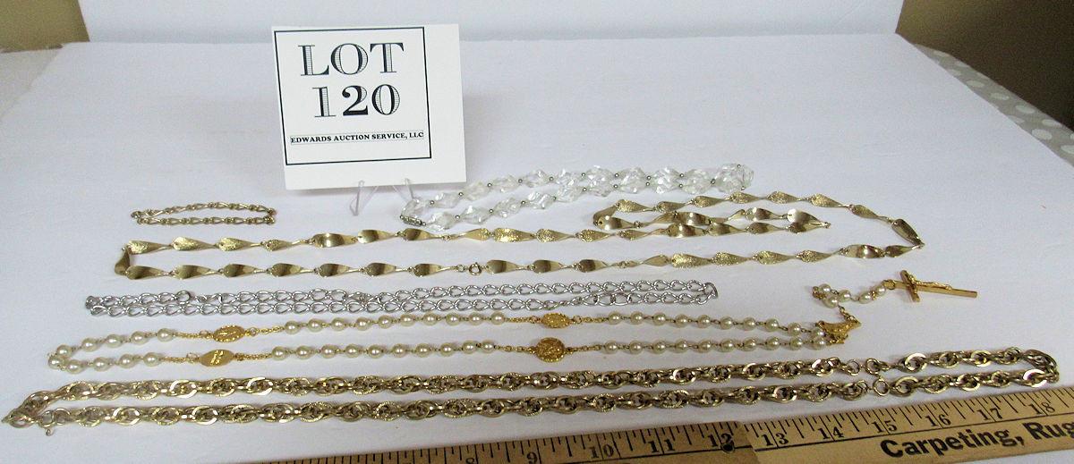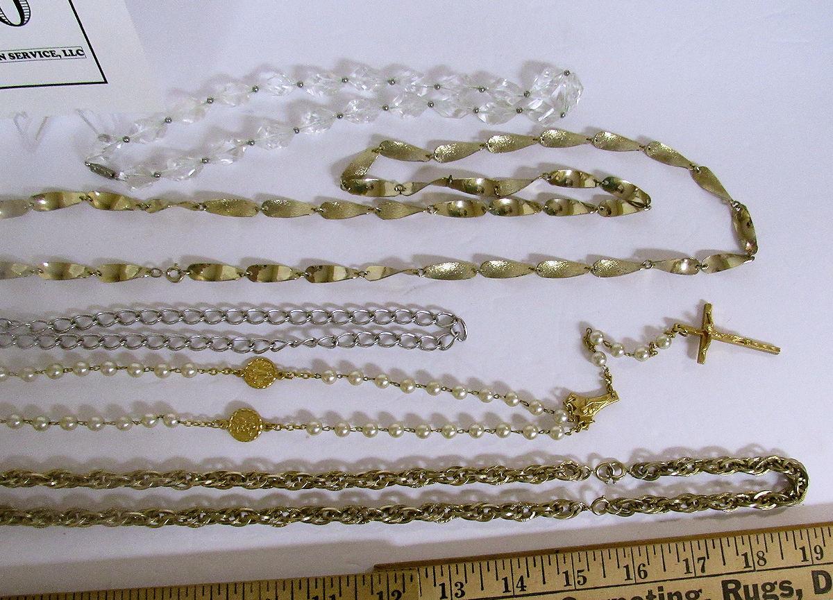 4 Necklaces, 1 Rosary, 1 Bracelet, Metal and Plastic