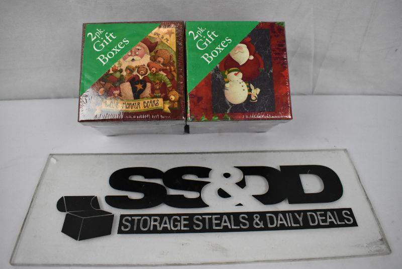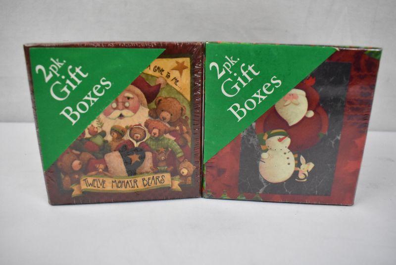 4 New Gift Boxes, Small. Two 2-packs, Christmas/Holiday Theme - New
