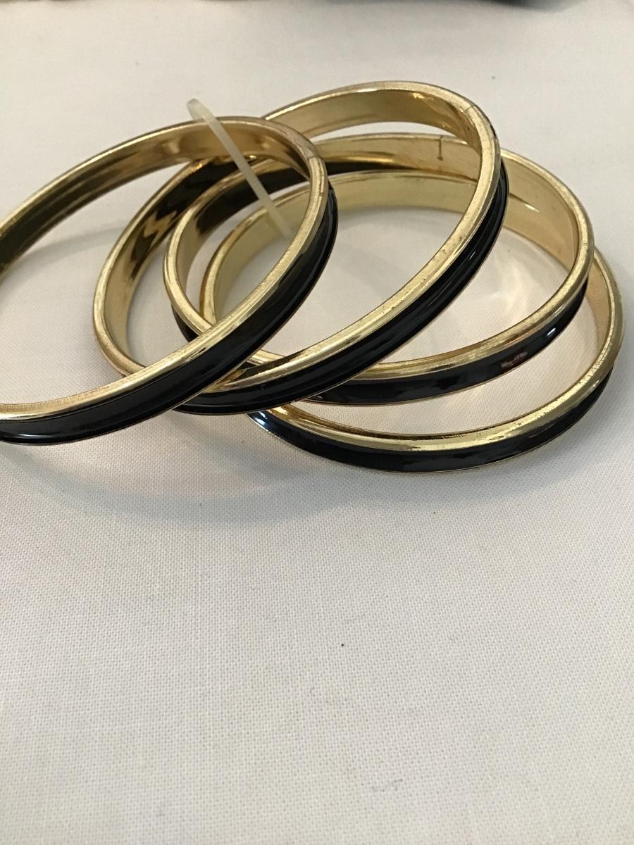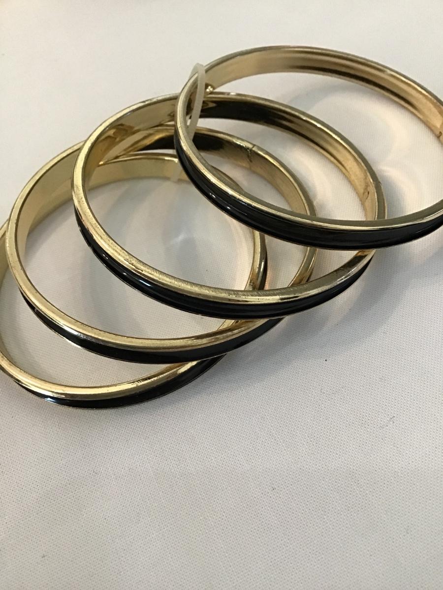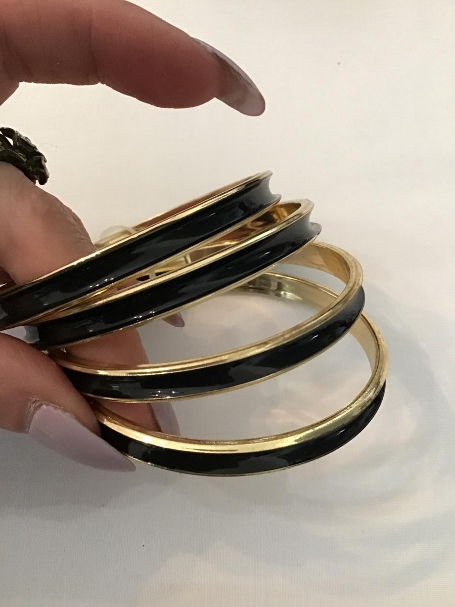 4 new gold toned, black bangle bracelets