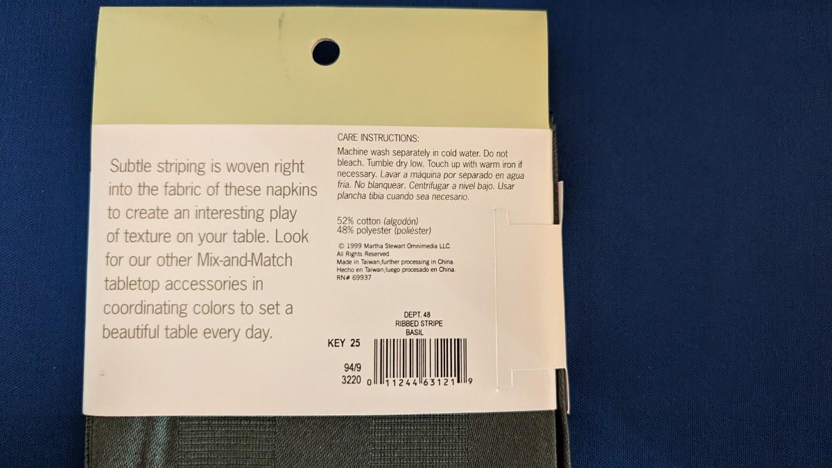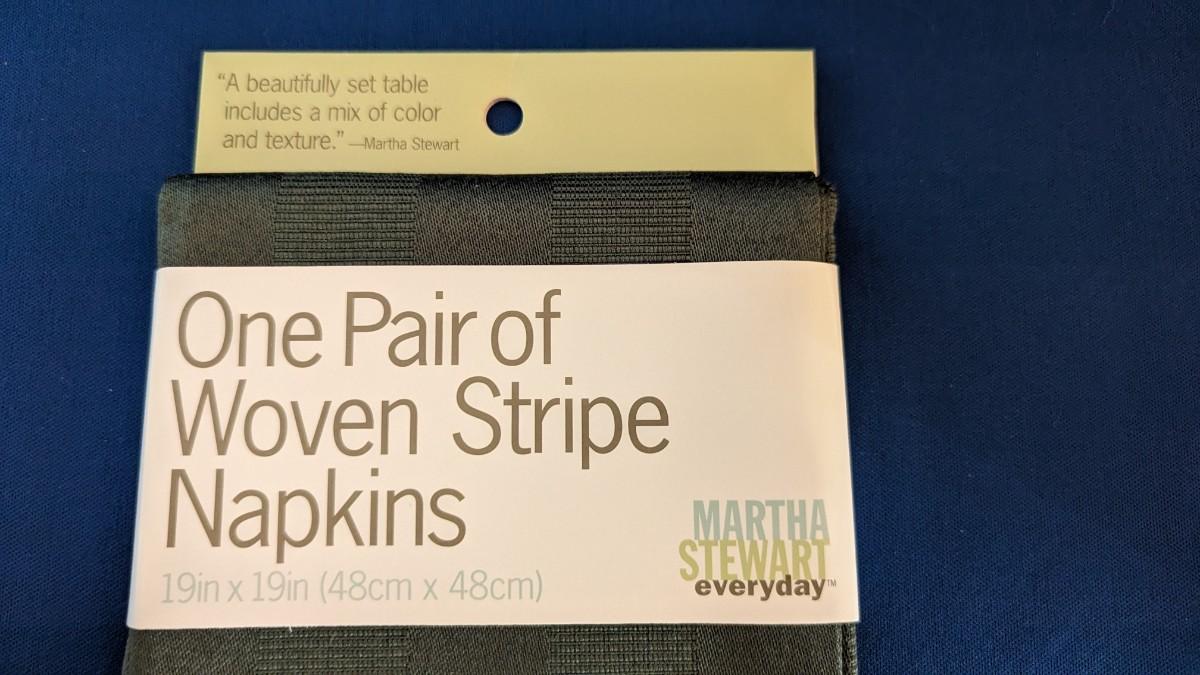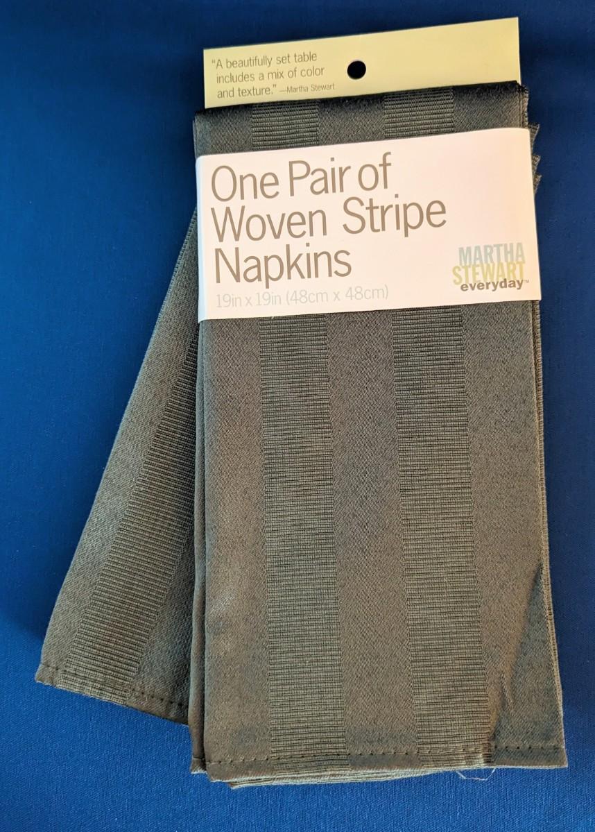 4 New Martha Steward woven stripe Napkins -Basil 19" x 19" Easy care.