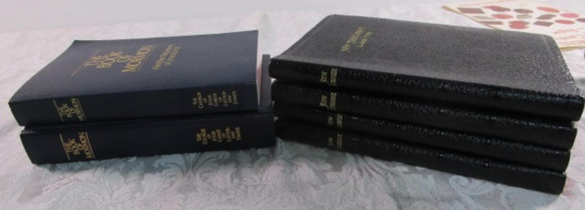 4 New Testaments Large Type, 2 copies of the Book of Mormon